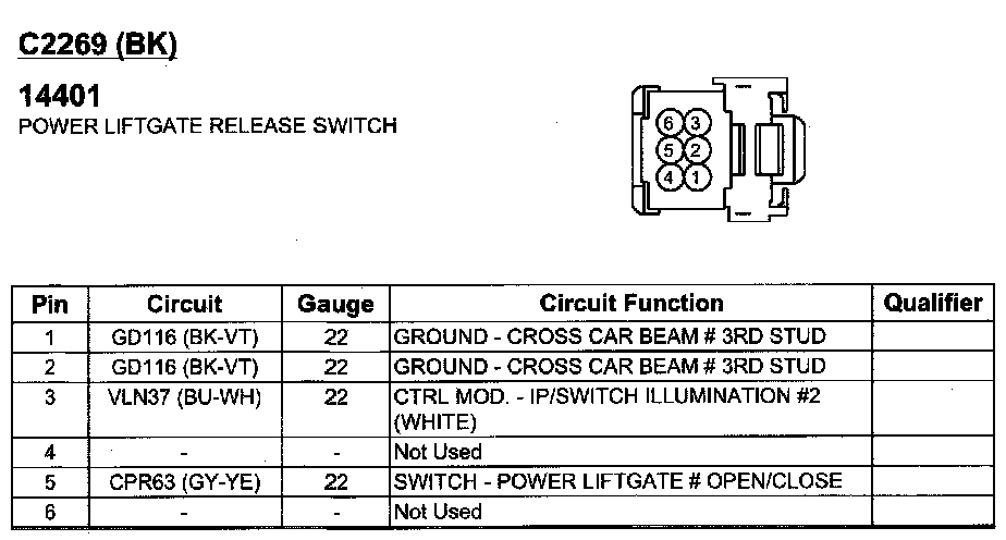 Power Liftgate Release Switch