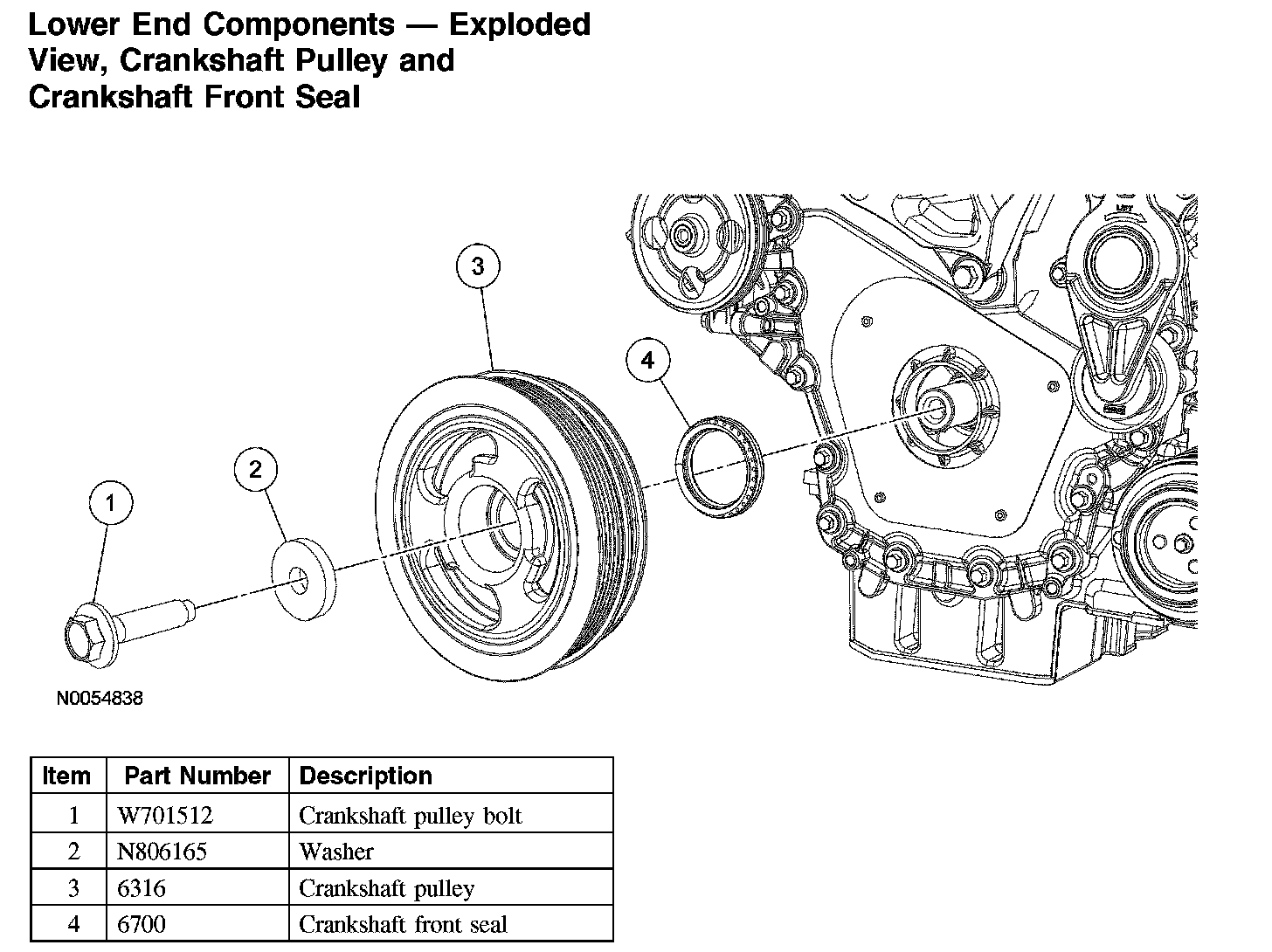 Lower End Components - Exploded View, Crankshaft Pulley and Crankshaft Front Seal