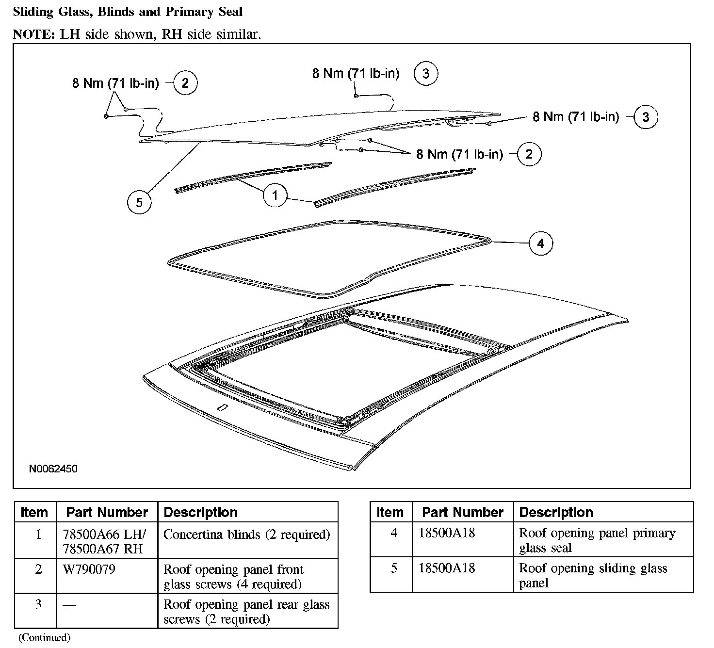 ROOF OPENING PANEL - EXPLODED VIEWExterior Trim, Seals, Fixed Glass And End Caps: