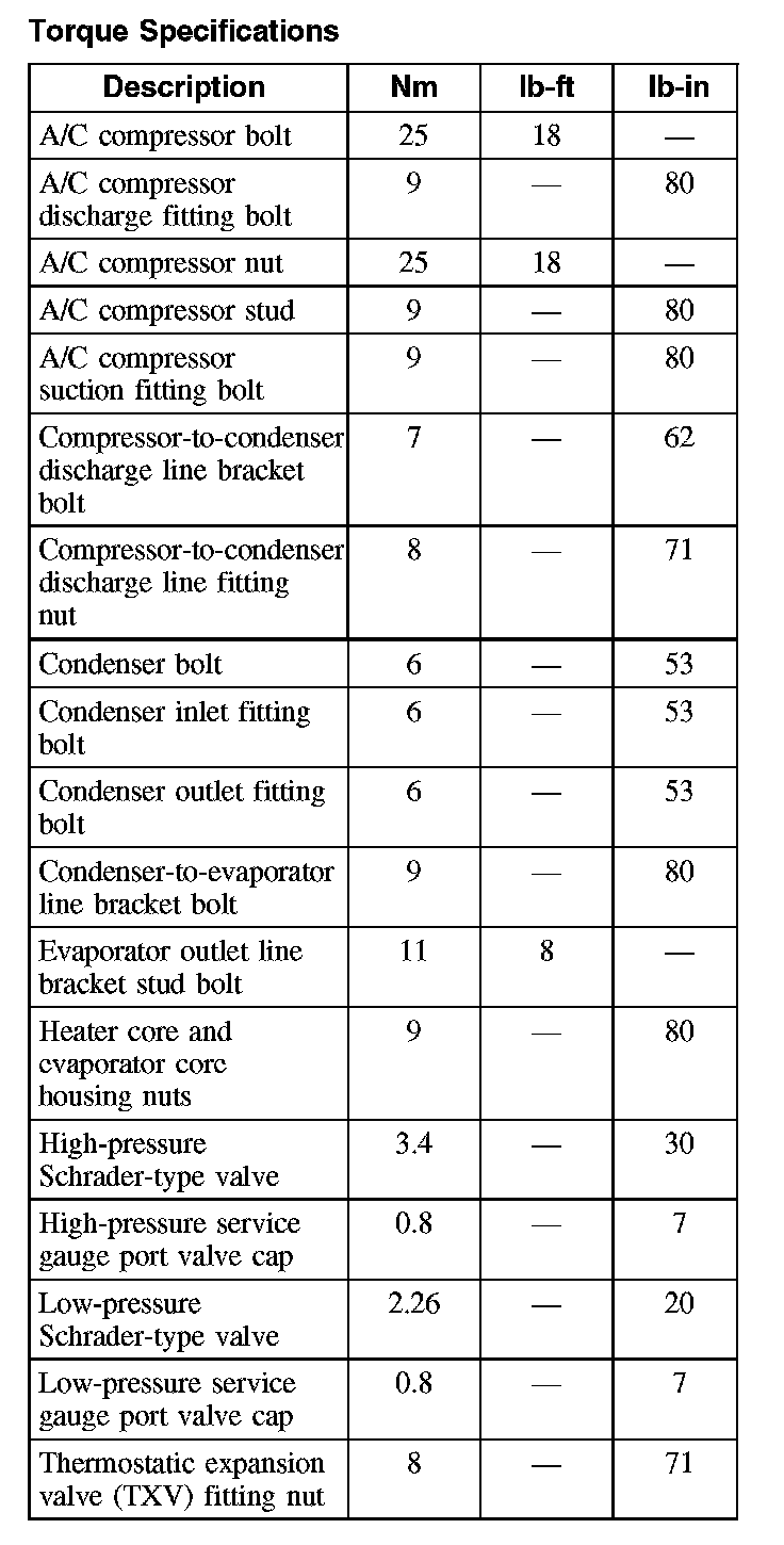 Torque Specifications: