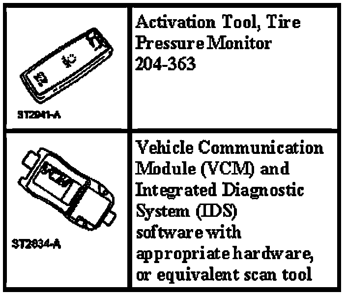 NOTE: The tire pressure sensor training procedure must be done on a single vehicle, in an area without radio frequency noise and at least 1 m (3 ft) away from other vehicles equipped with a Tire Pressure Monitoring System (TPMS).