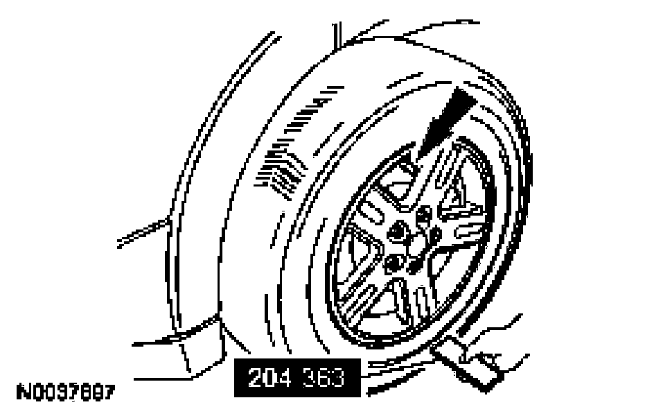 Place the Tire Pressure Monitor Activation Tool on the LF tire sidewall opposite (180 degrees) from the valve stem. Press and release the test button on the Tire Pressure Monitor Activation Tool. The horn will sound briefly to indicate that the tire pressure sensor has been recognized by the SJB.