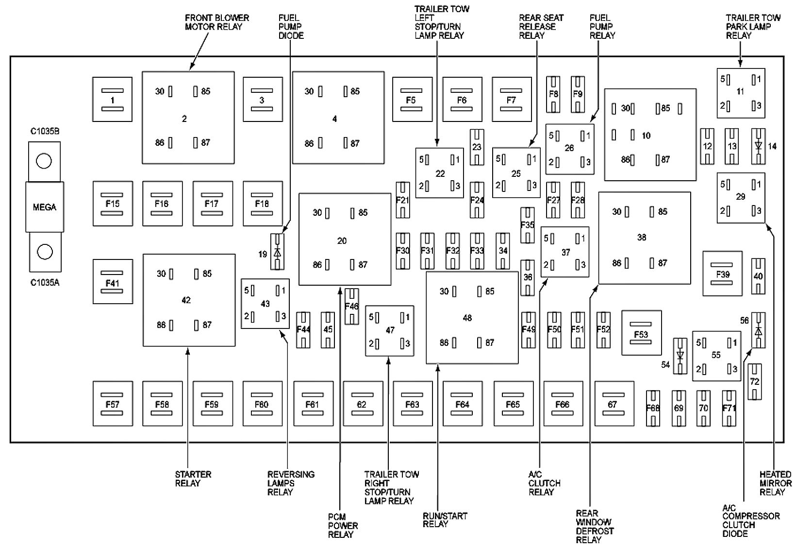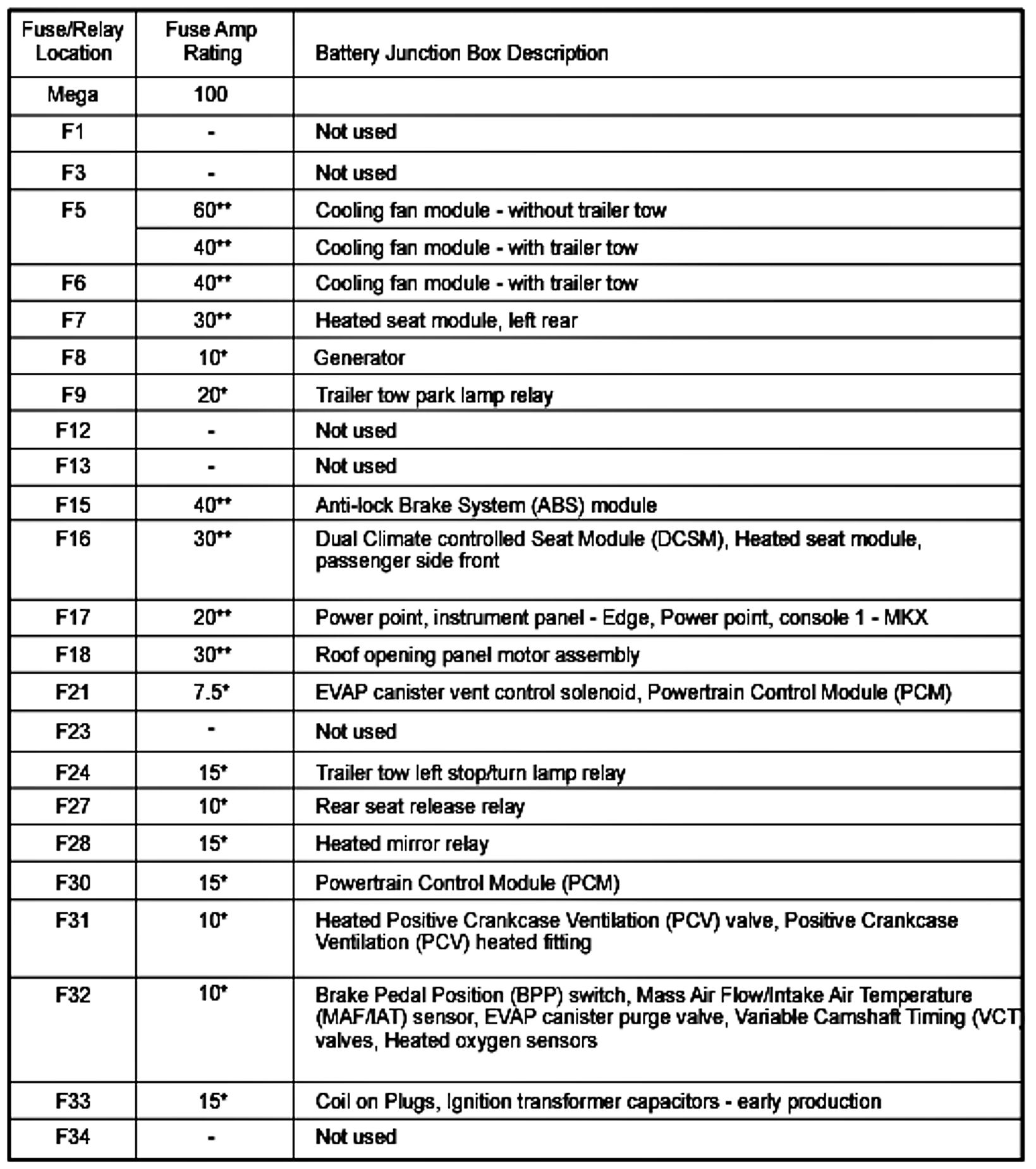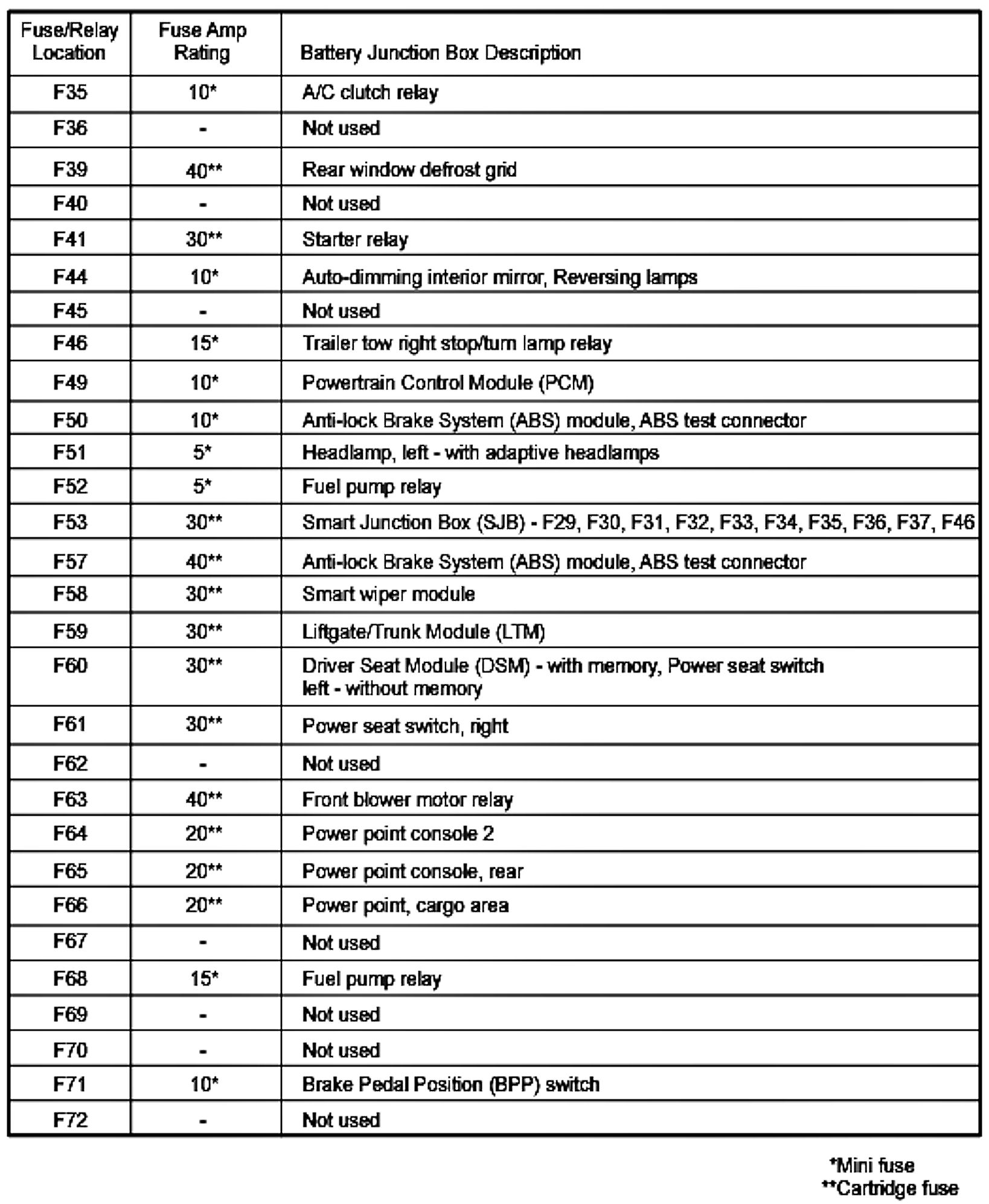 ALLDATA Editor's Note: Ford identifies this one component by 2 different names. Users have reported success comparing these images to determine Application/ID or Location of Fuses and Relays with the Power Distribution Box / Battery Junction Box (BJB).