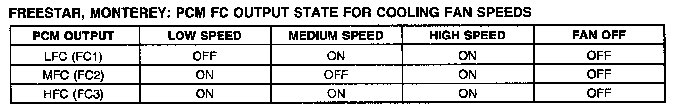 Freestar, Monterey: PCM FC Output State For Cooling Fan Speeds: