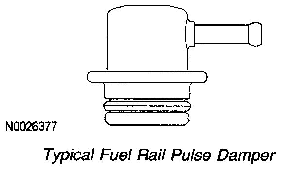 The fuel rail pulse damper is located on the fuel rail and reduces the fuel system noise caused by the pulsing of the fuel injectors. The vacuum port located on the damper is connected to manifold vacuum to avoid fuel spillage if the pulse damper diaphragm ruptures. The fuel rail pulse damper should not be confused with a fuel pressure regulator; it does not regulate the fuel rail pressure.