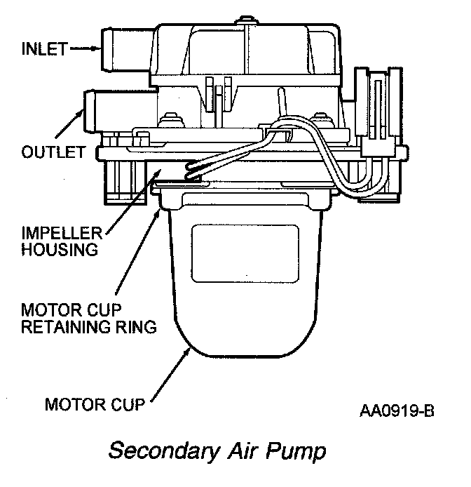 The secondary AIR pump provides pressurized air to the secondary AIR system. The secondary AIR pump functions independently of RPM and is controlled by the PCM. The secondary AIR pump is only used for short periods of time. Delivery of air is dependent on the amount of system backpressure and system voltage. The secondary AIR pump draws dry filtered air from the intake air system downstream of the MAF/IAT sensor.