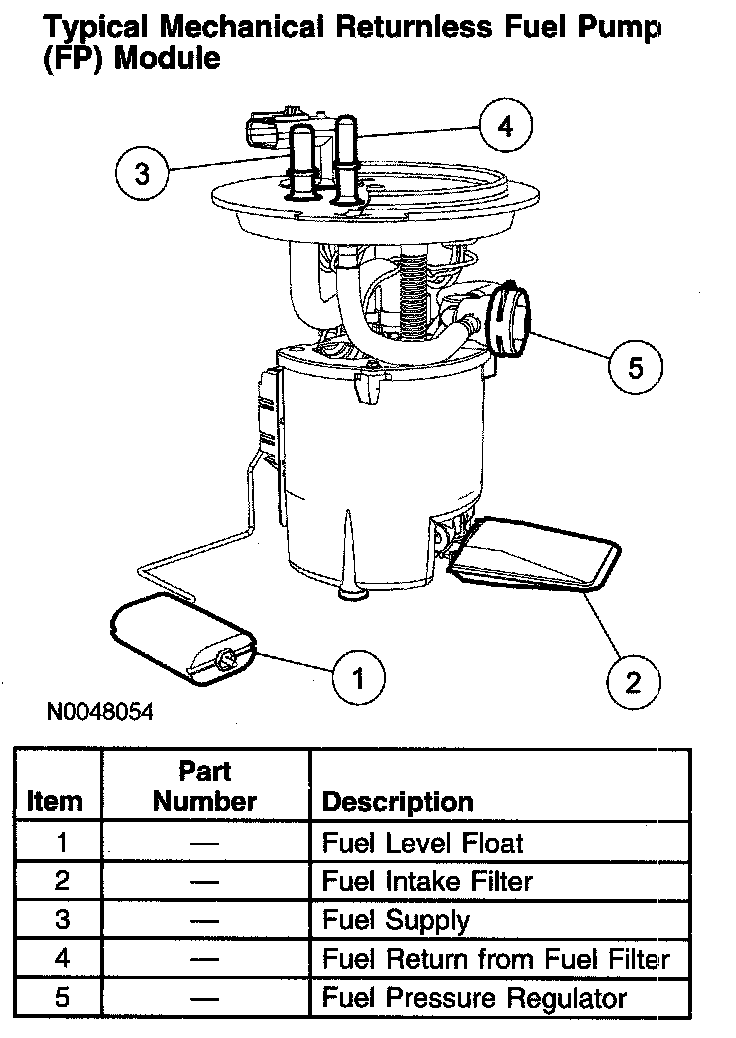 Typical Mechanical Returnless Fuel Pump (FP) Module: