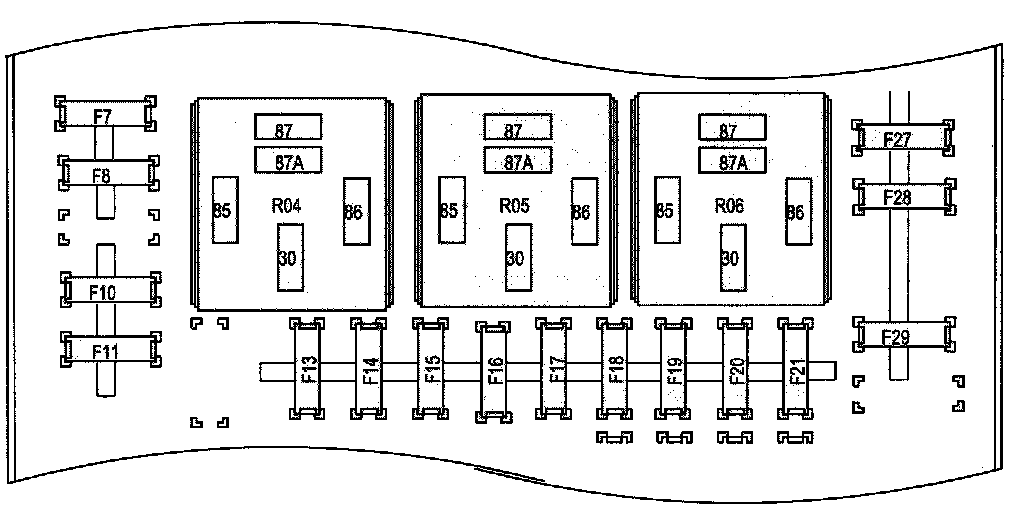 Fuse and Relay Information contains a view of the fuse/relay box in which fuses and relays are identified, numbered and named. Fuse and relay numbering and naming follow the indication of the fuse panel cover. In addition, for all removable relays, pin positions are added to illustrate proper orientation.