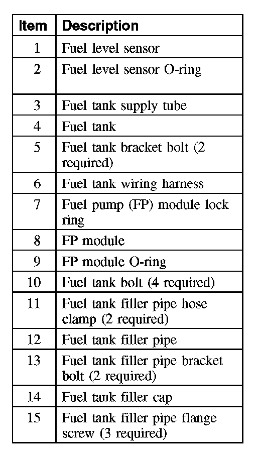 5. CAUTION: The fuel pump (FP) module and fuel level sensor will be below the fuel level in the tank when the tank is full. Make sure to drain 1/8 of the fuel capacity through the filler pipe prior to removing the fuel level sensor or fuel spillage will occur.