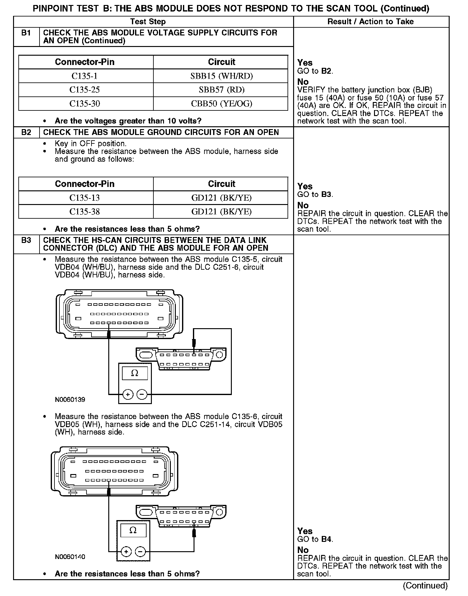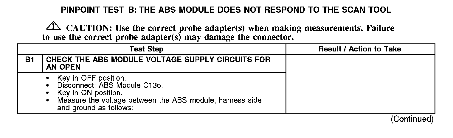 PINPOINT TEST B: THE ABS MODULE DOES NOT RESPOND TO THE SCAN TOOL