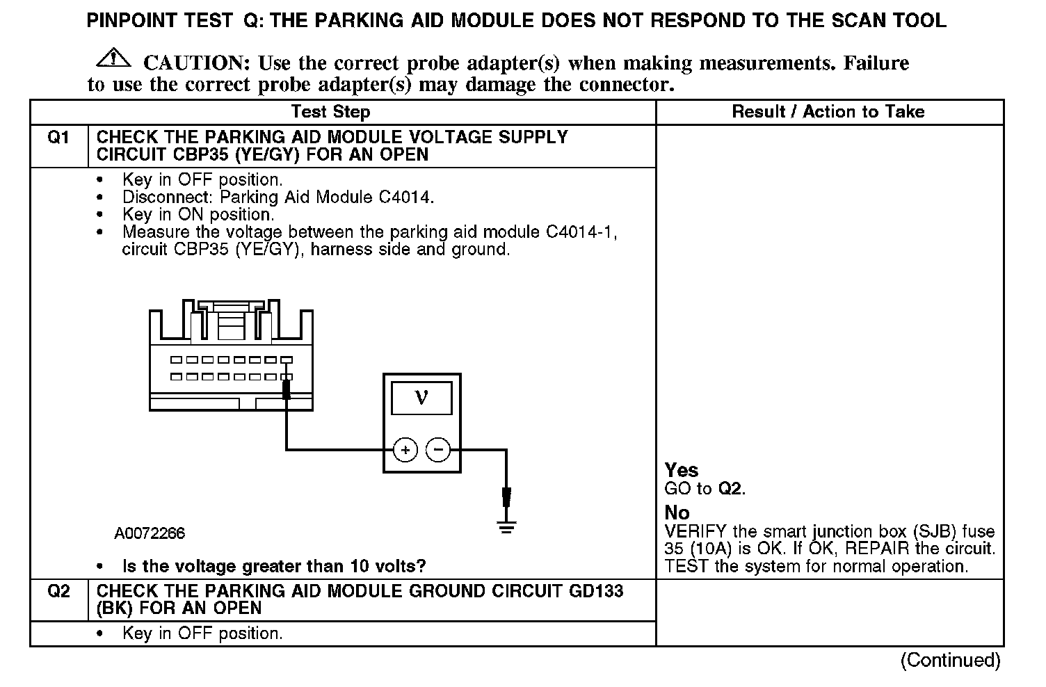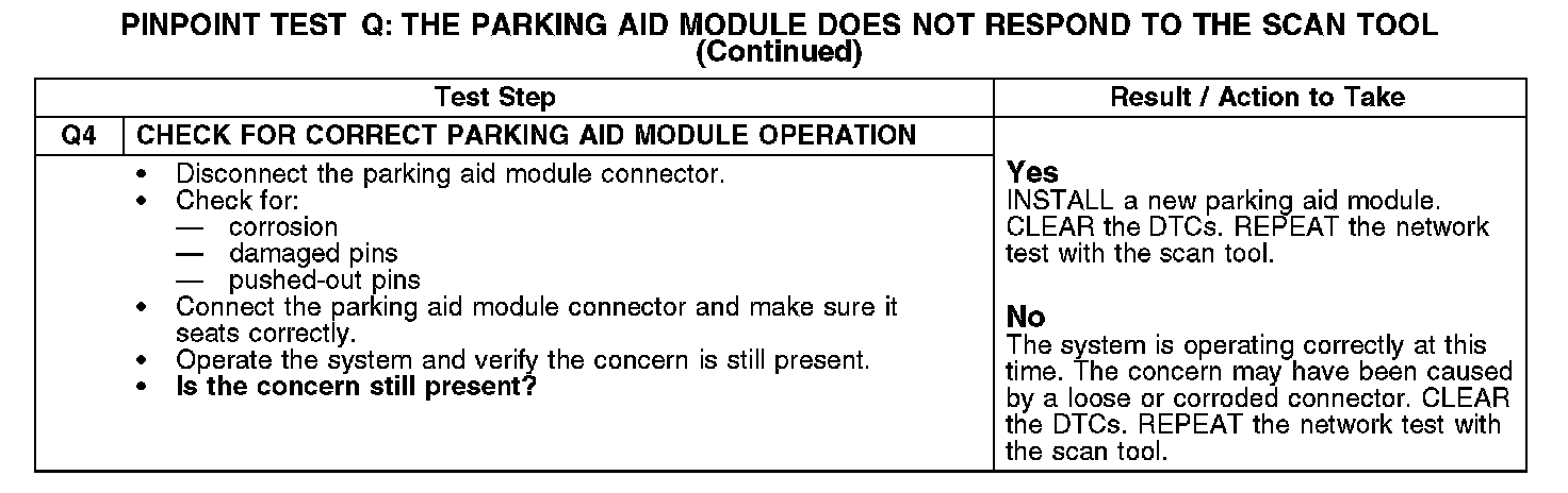 PINPOINT TEST Q: THE PARKING AID MODULE DOES NOT RESPOND TO THE SCAN TOOLQ1-Q2: