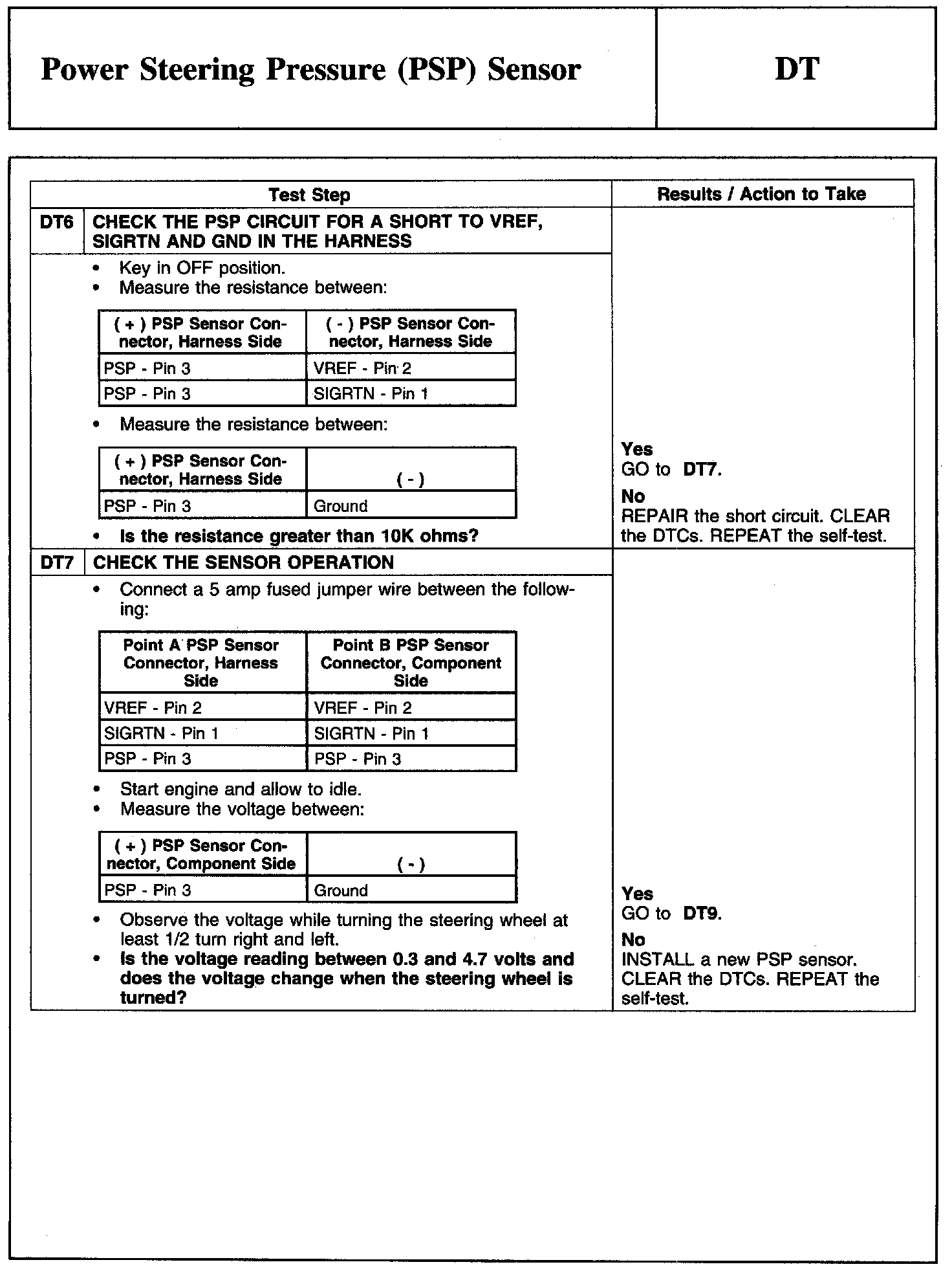 PINPOINT TEST DT: POWER STEERING PRESSURE (PSP) SENSOR