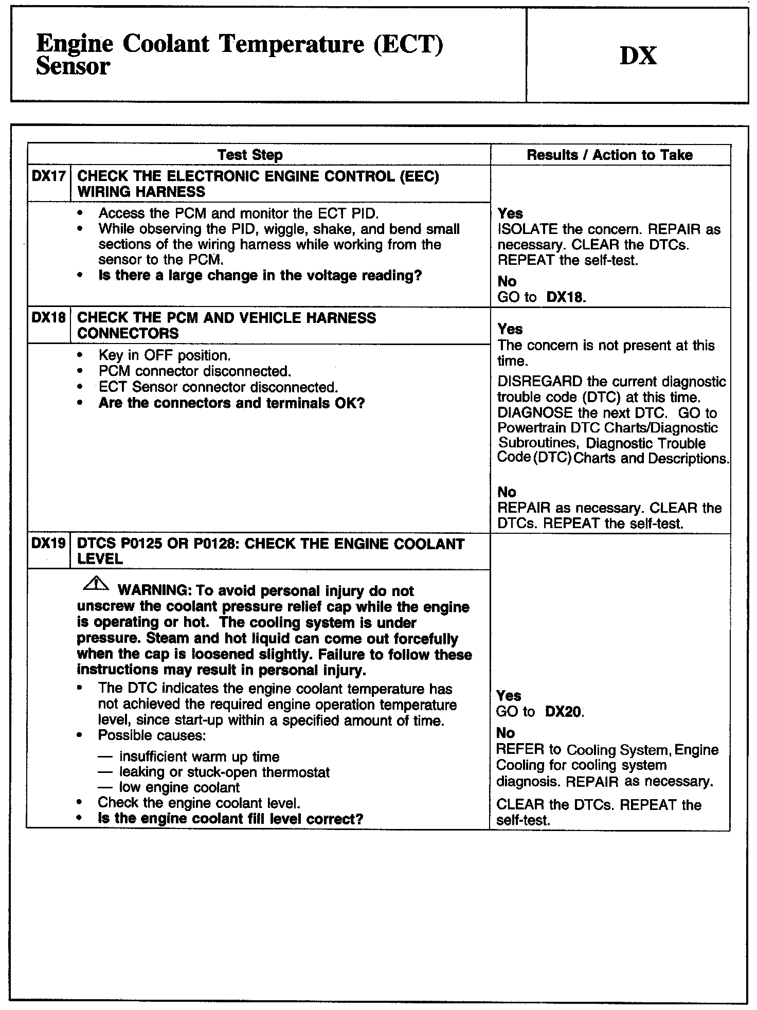 Tests DX: Engine Coolant Temperature (ECT) Sensor