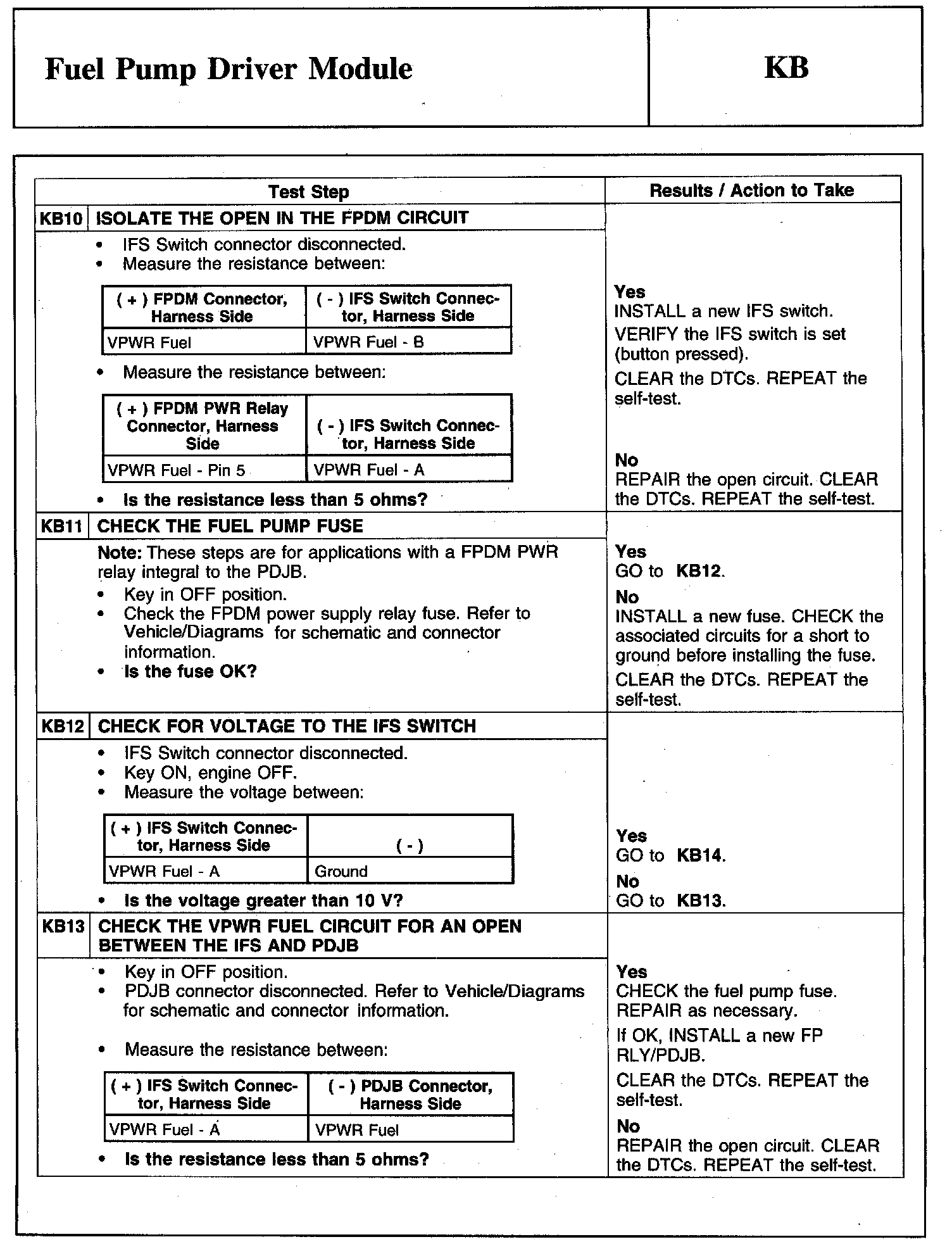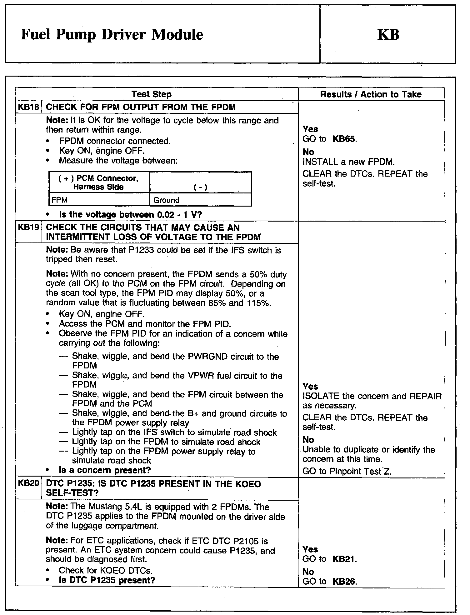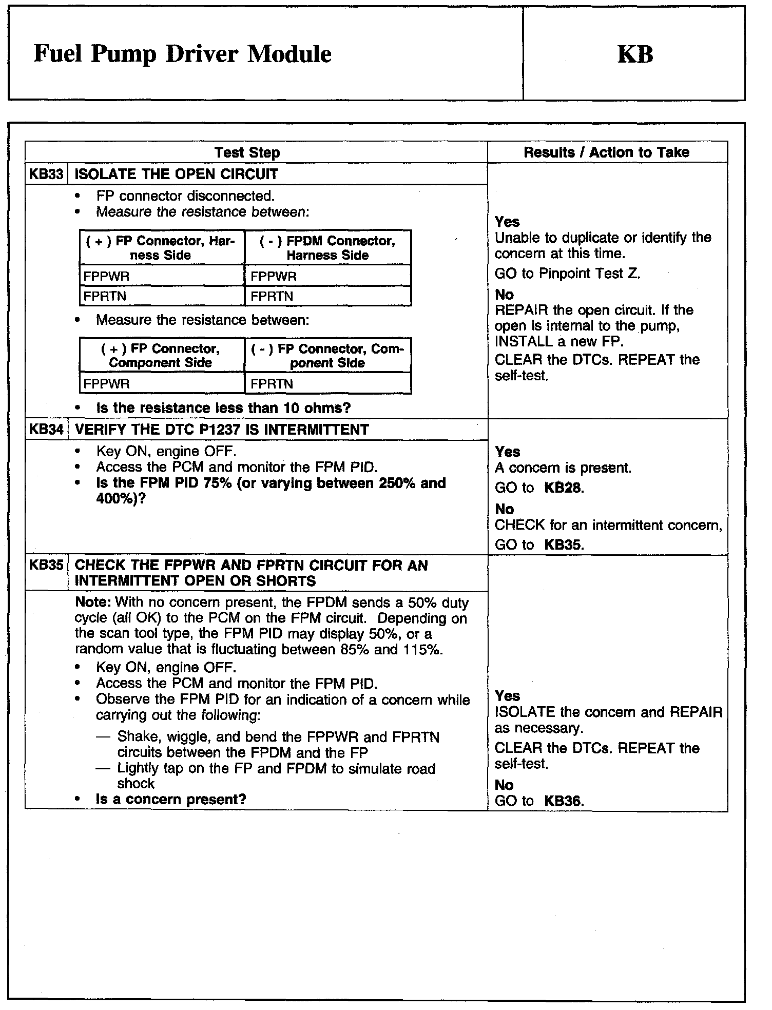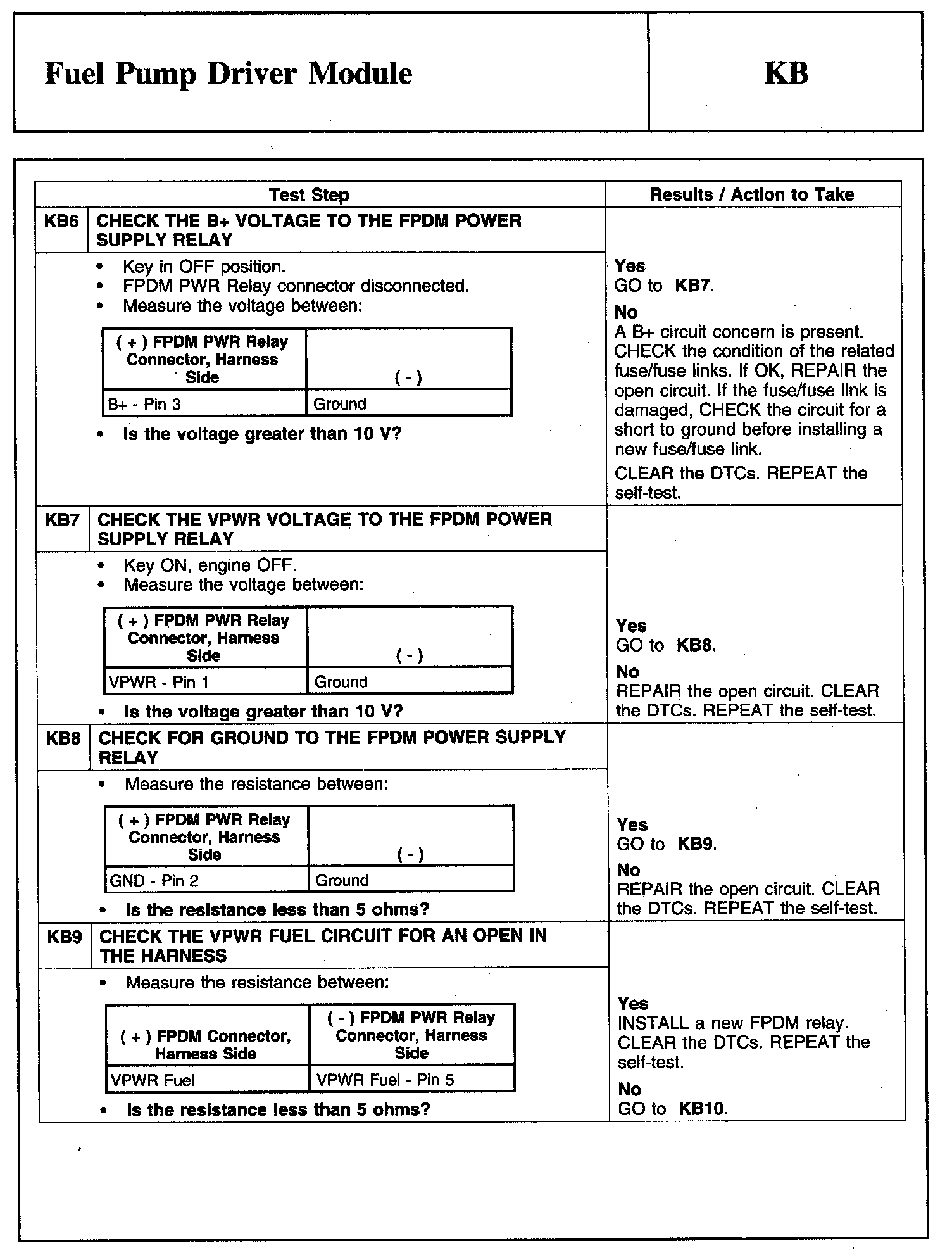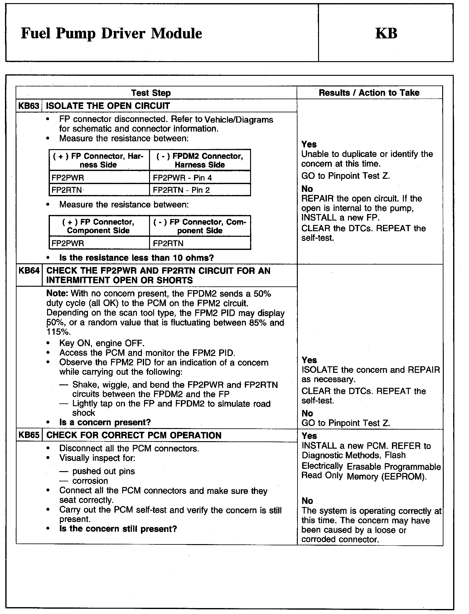 PINPOINT TEST KB: FUEL PUMP DRIVER MODULE