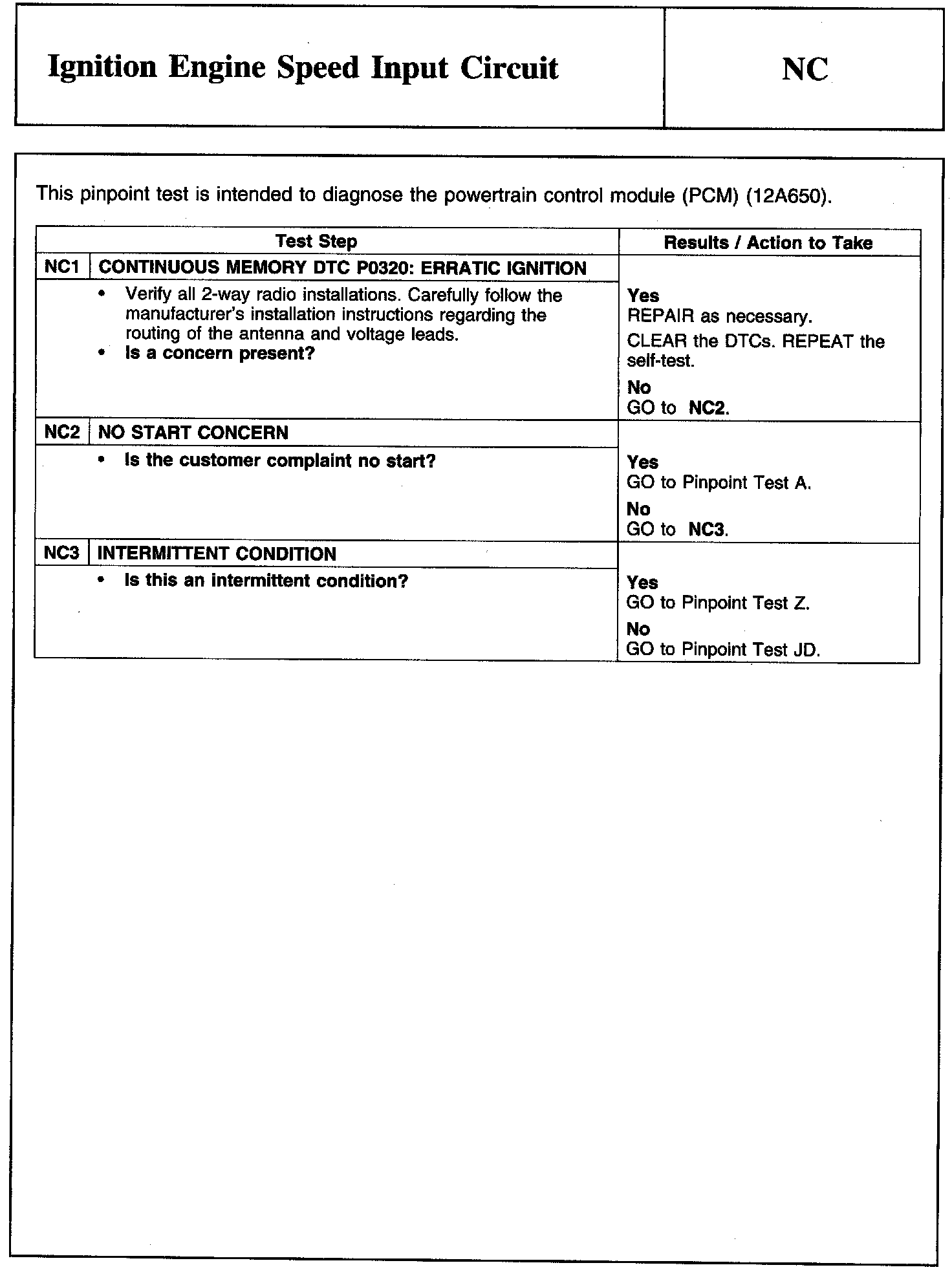 PINPOINT TEST NC: IGNITION ENGINE SPEED INPUT CIRCUIT