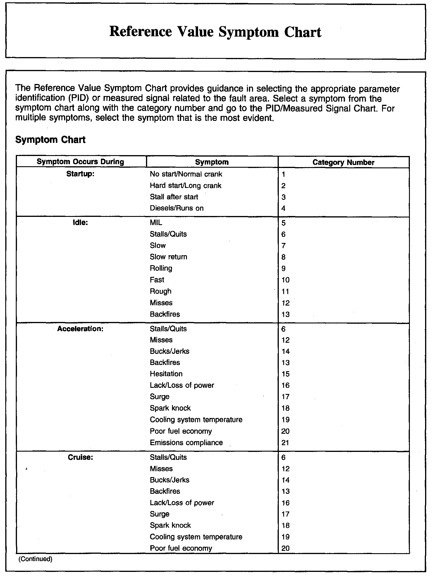 Reference Value Symptom Chart (Part 1):
