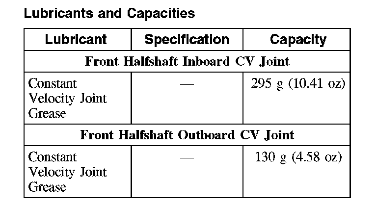 Lubricants and Capacities: