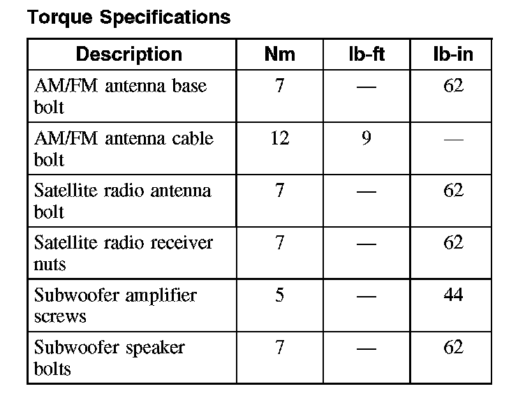 Torque Specifications: