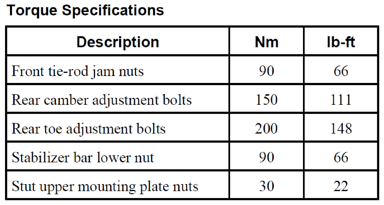 Torque Specifications