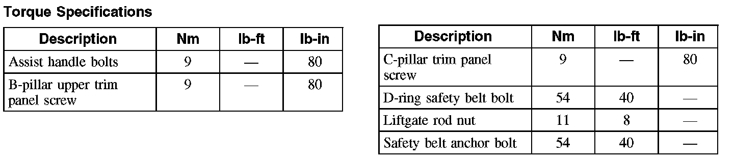 Torque Specifications: