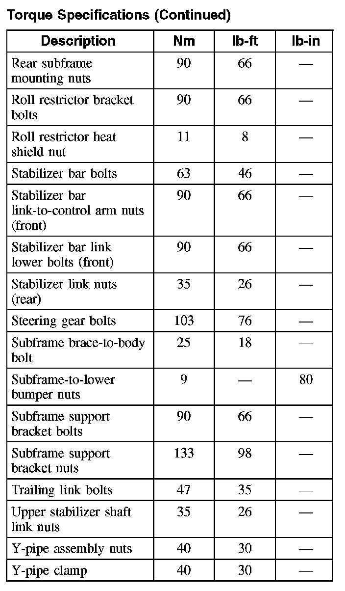 Torque Specifications (Part 2):