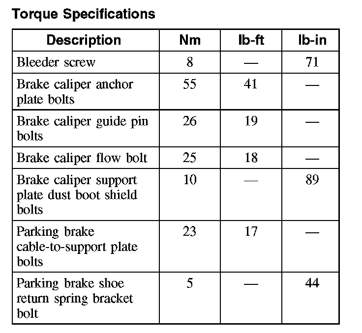 Torque Specifications, Rear