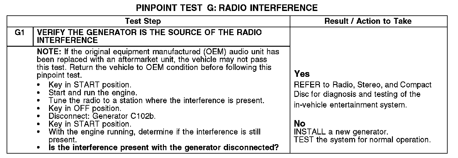 PINPOINT TEST G: RADIO INTERFERENCEG1: