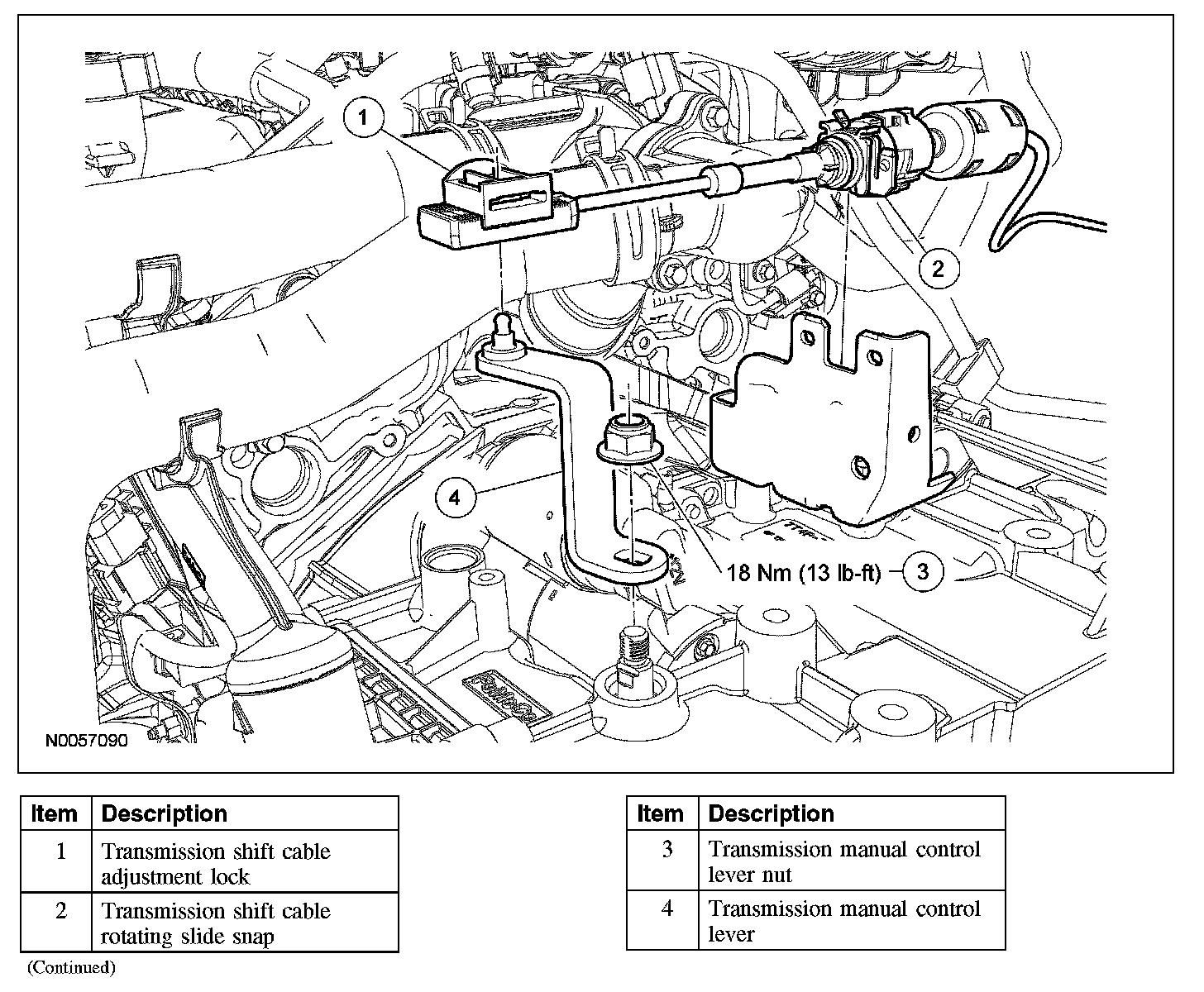 3. Disconnect the transmission shift cable and adjustment lock from the transmission manual control lever.