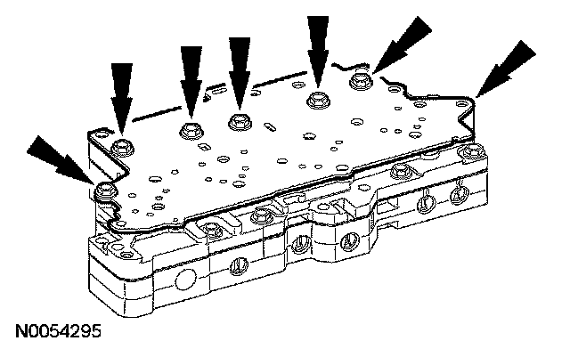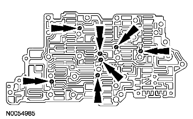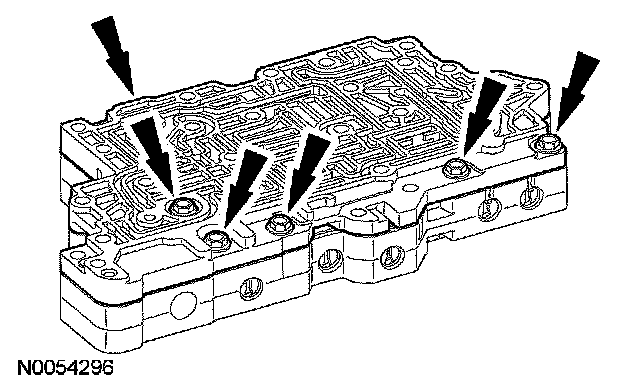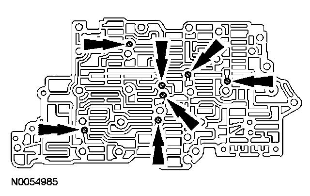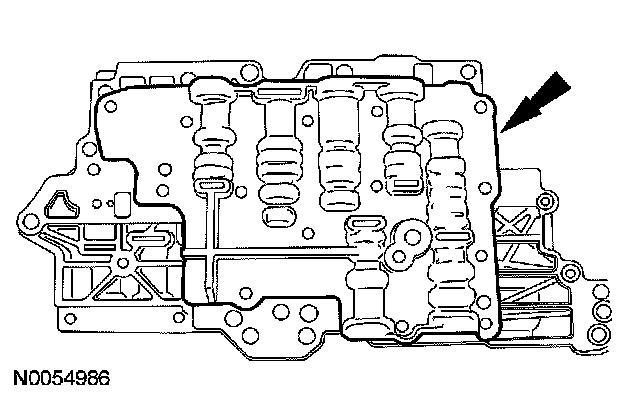 8. CAUTION: Remove the valves by tapping the valve body on the palm of the hand to slide the valves out of the bores. It may be necessary to remove the valves and springs using a pick. If it is necessary to use a pick, use extreme caution to prevent damaging the valves or valve bores. If necessary, disassemble parts of the main control valve body in small groups. Take special care when handling the main control components, since they are the most precise and delicate parts of the transaxle. Neatly arrange the parts as they are removed to avoid mixing similar pieces.