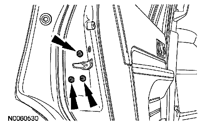 13. Remove the access plug from the latch side of door and remove the outside door handle reinforcement screw.