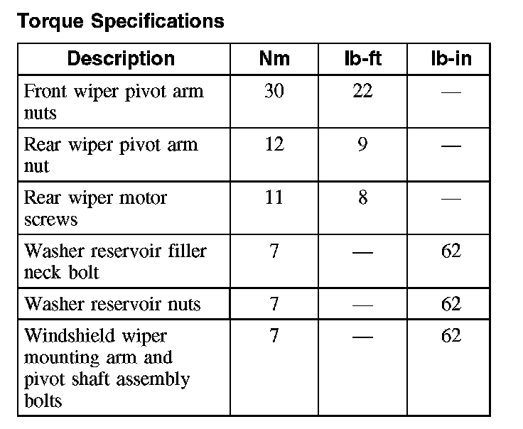 Wiper and Washer Systems: Specifications