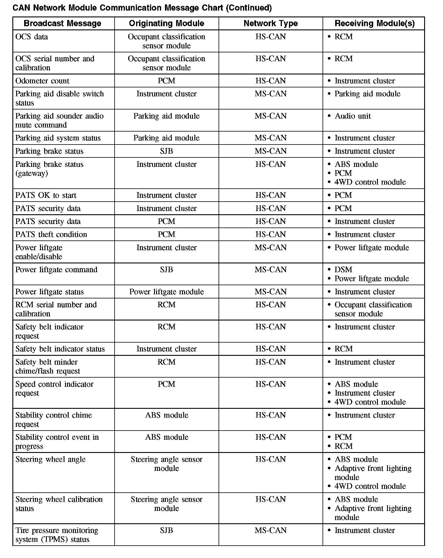 The MS-CAN network operates at a maximum data transfer speed of 125 Kbps for bus messages and is designed for general information transfer. The HS-CAN network operates at a maximum data transfer speed of 500 Kbps and is designed for real time information transfer and control.