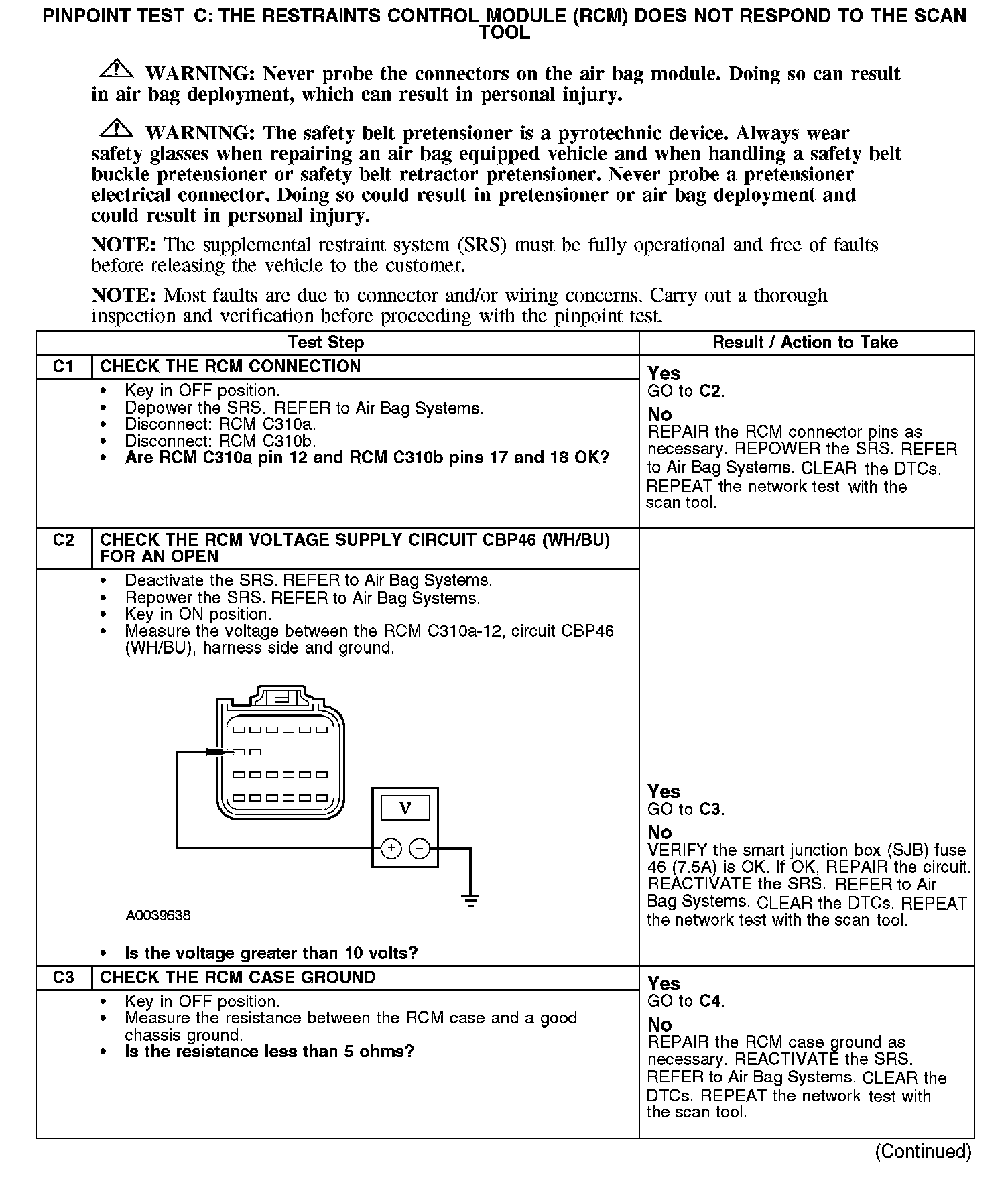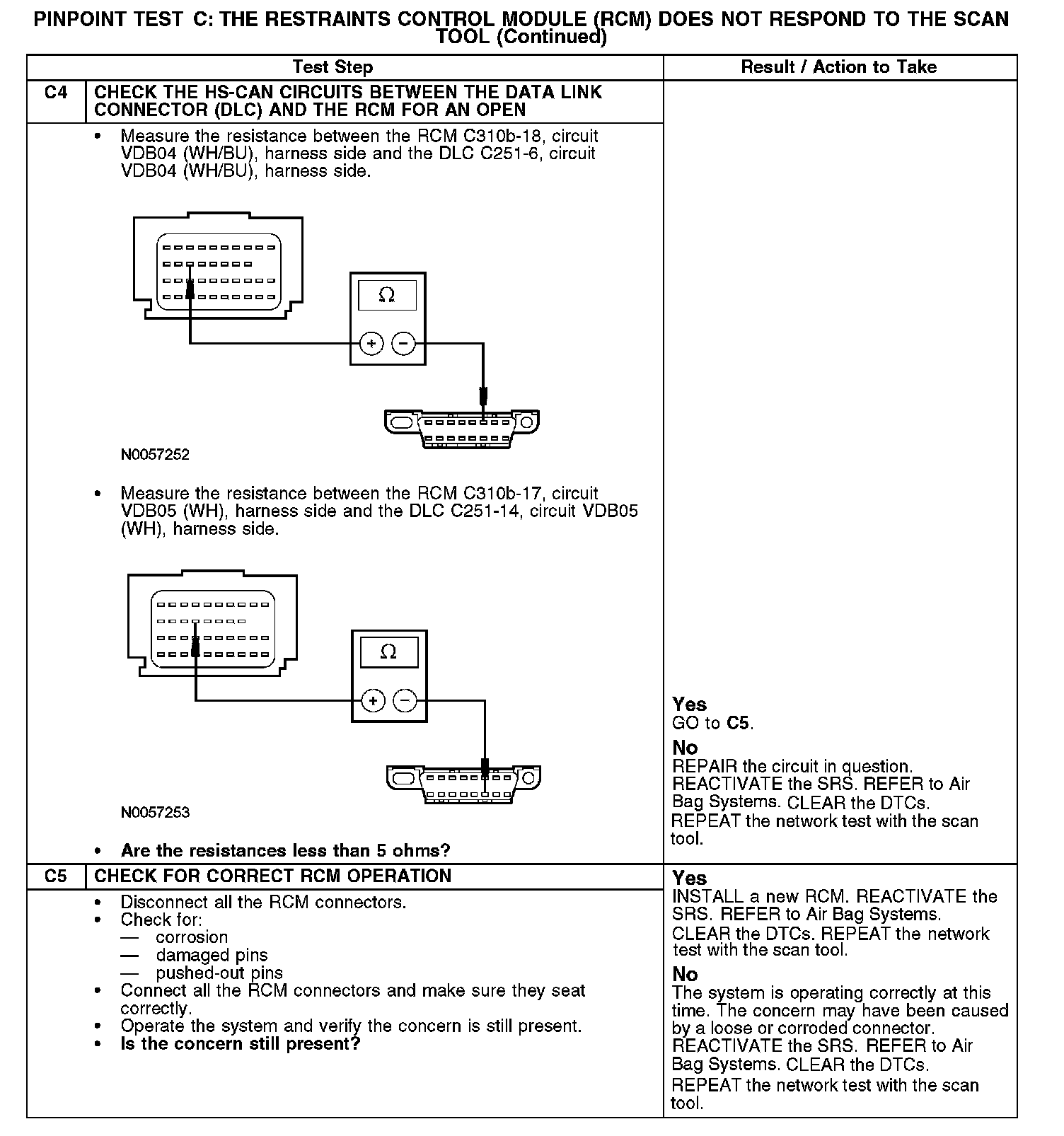 PINPOINT TEST C: THE RESTRAINTS CONTROL MODULE (RCM) DOES NOT RESPOND TO THE SCAN TOOL