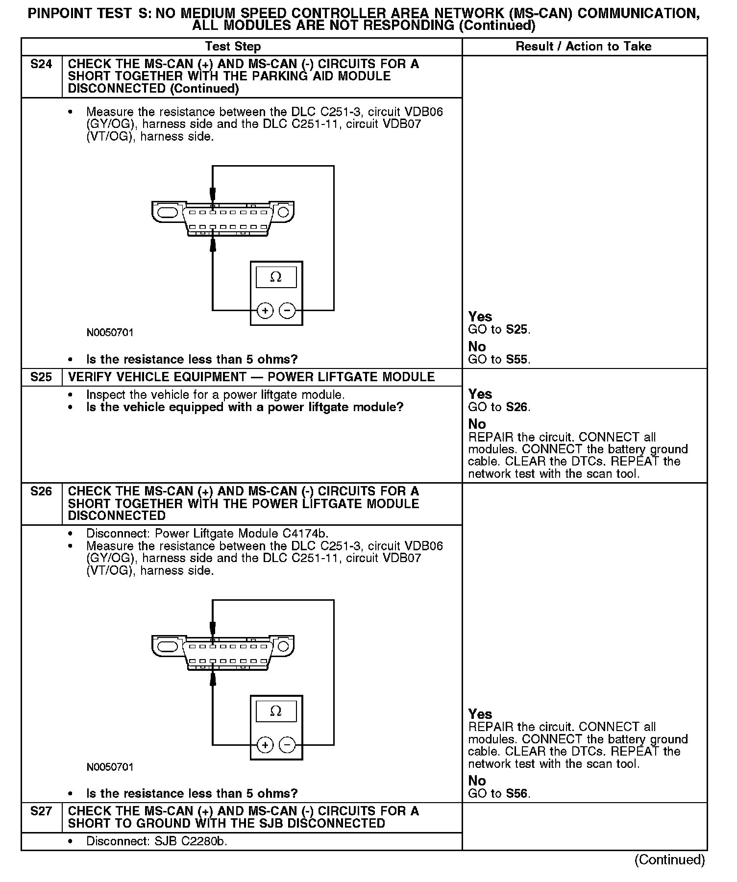 PINPOINT TEST S: NO MEDIUM SPEED CONTROLLER AREA NETWORK (MS-CAN) COMMUNICATION, ALL MODULES ARE NOT RESPONDINGS1-S2: