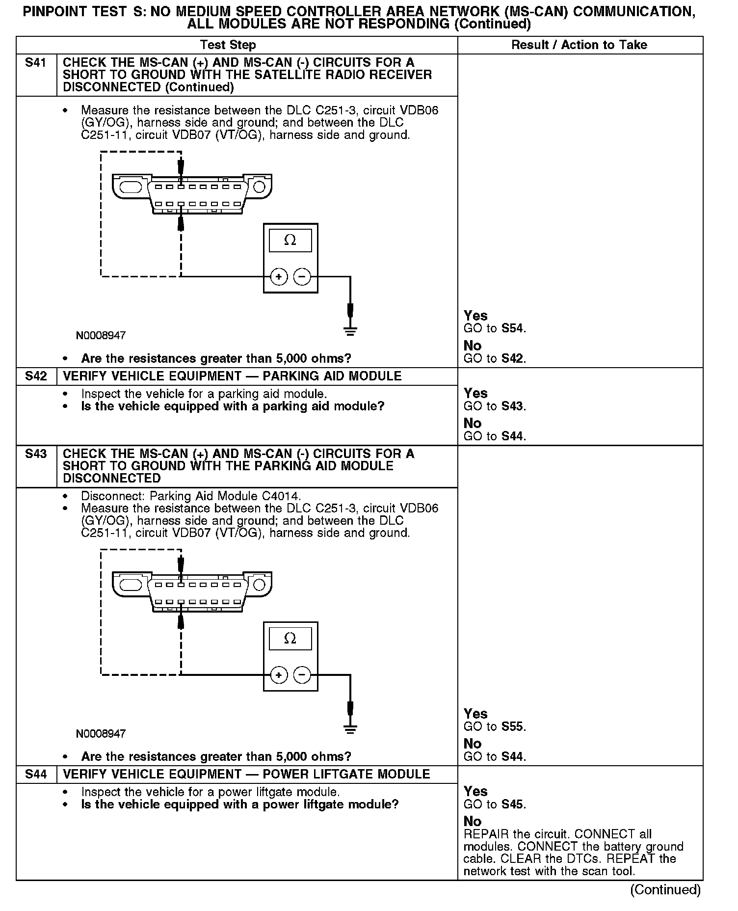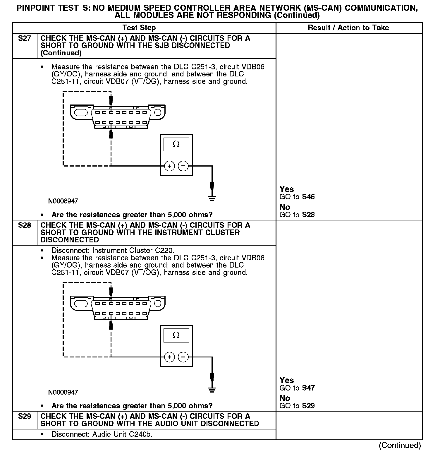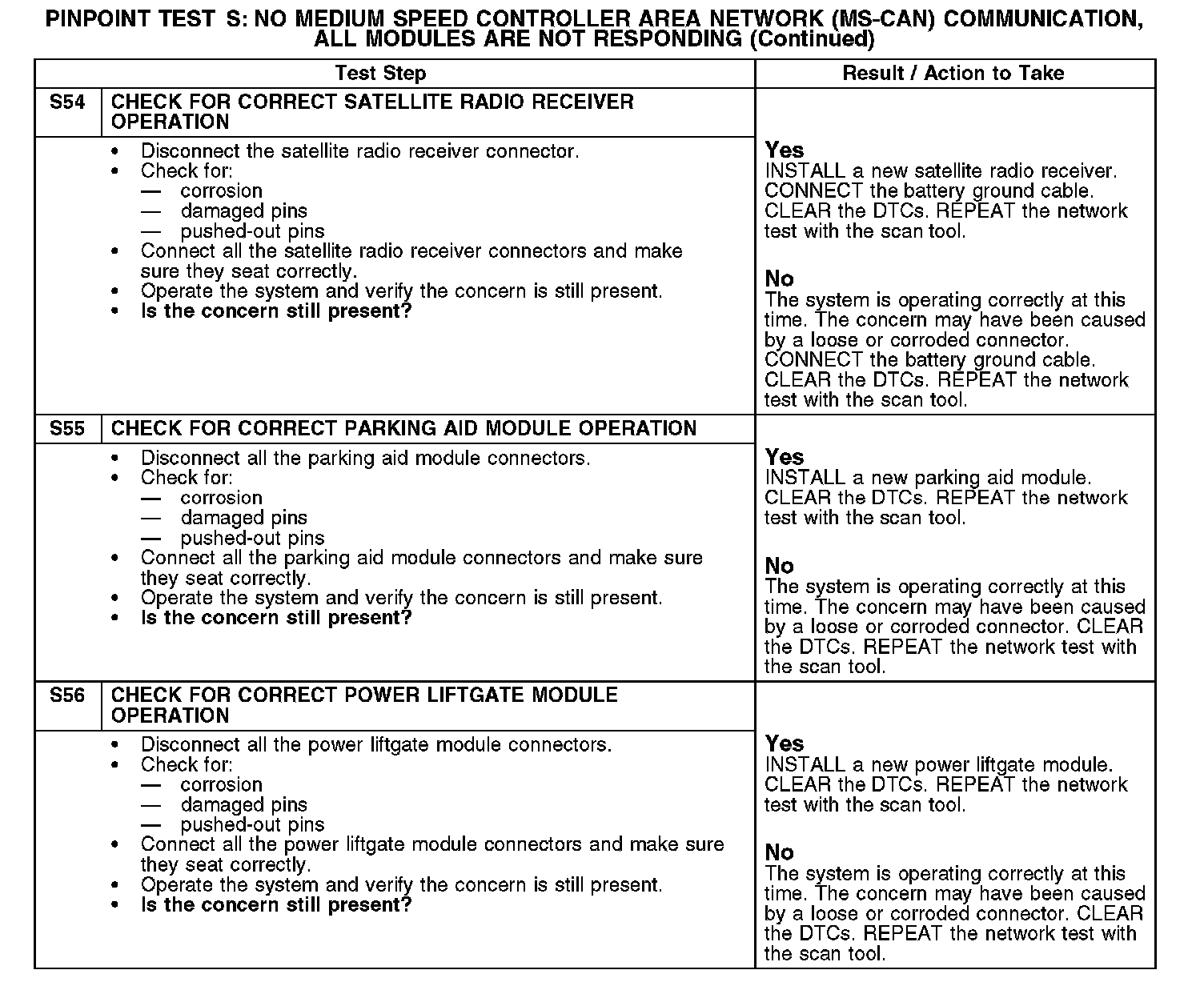Test S: No Medium Speed Controller Area Network (MS-CAN) Communication, All Modules Are Not Responding