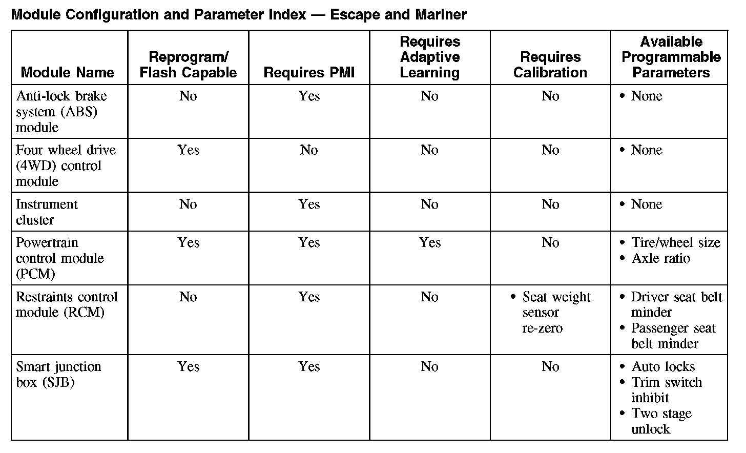 Programmable parameters are customer preference items that may be modified by the dealer via scan tool or in some cases modified by the customer following a procedure listed in the vehicle Owner's Literature. While many configuration options may exist for a module, only a few of these options are programmable parameters.