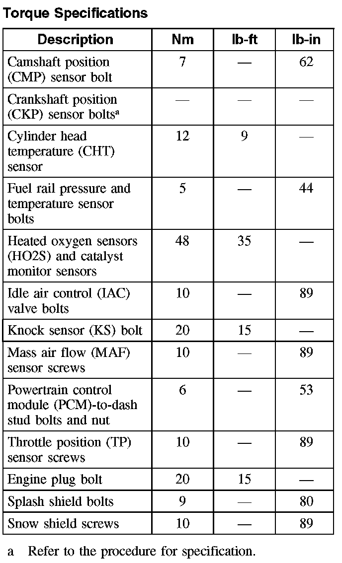 Torque Specifications: