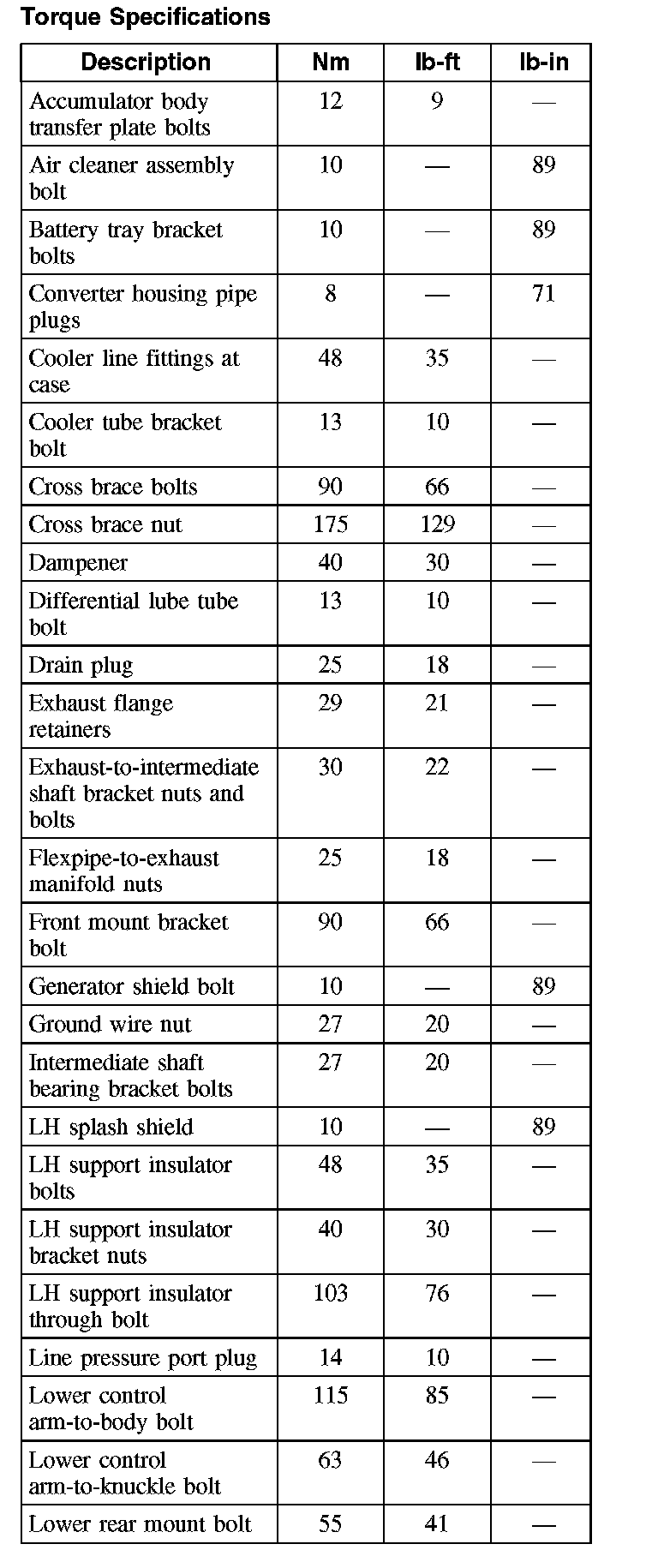 Torque Specifications (Continued):