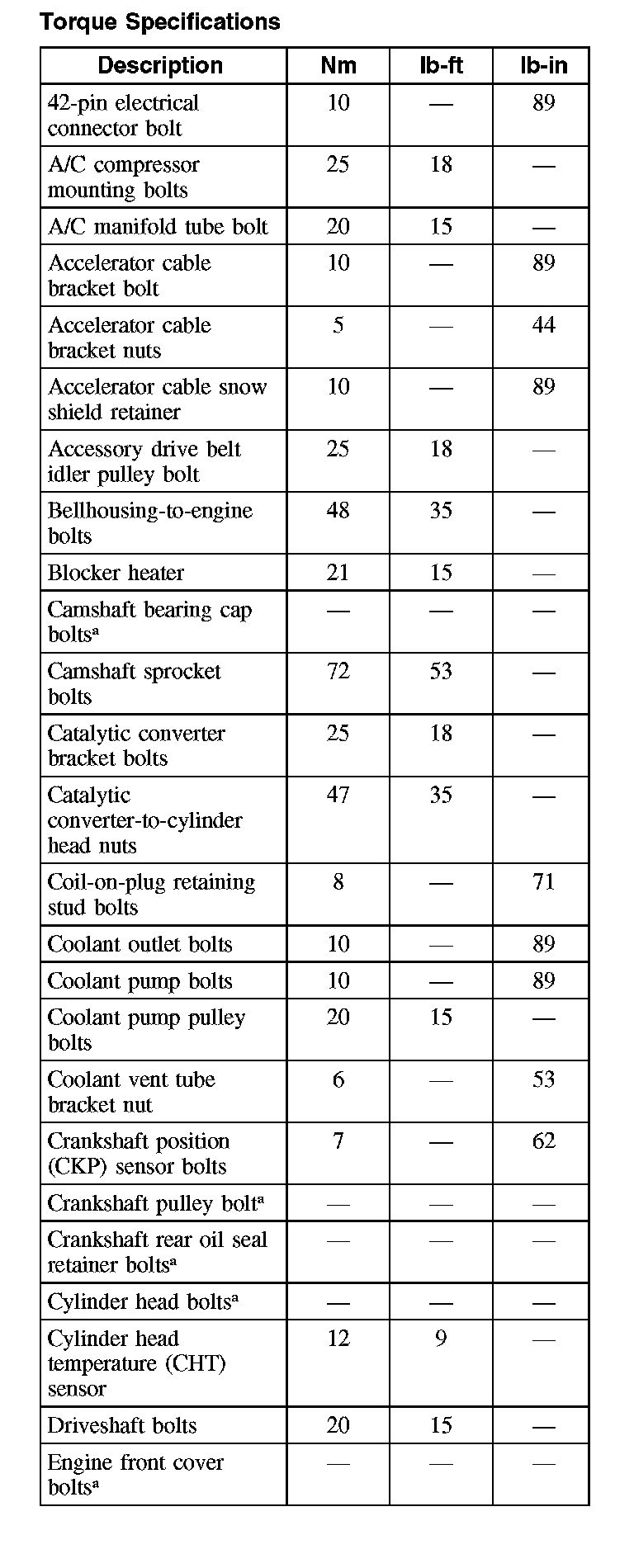 Torque Specifications (Part 1):