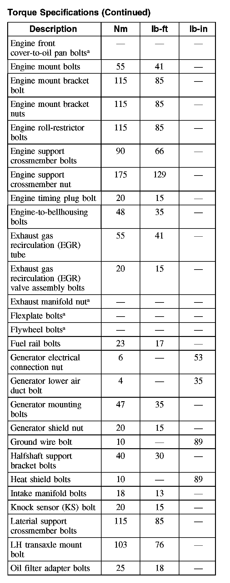 Torque Specifications (Part 4):