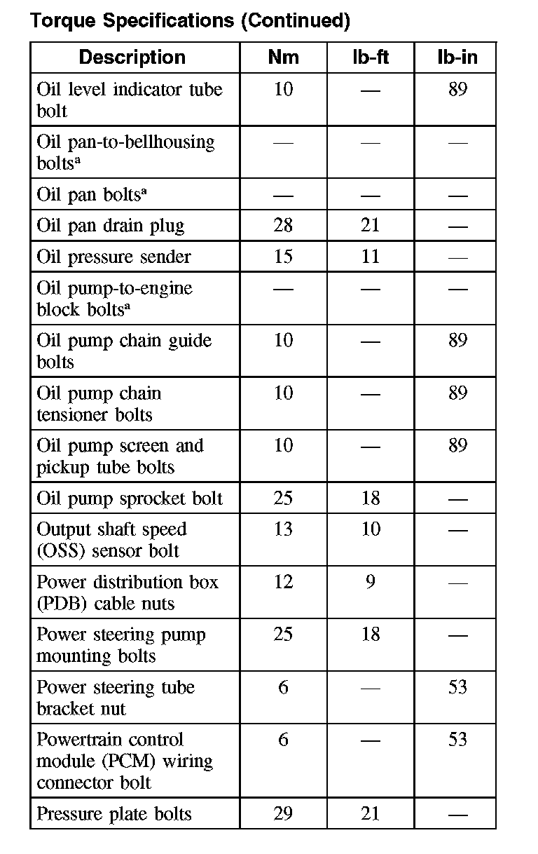 Torque Specifications (Part 2):