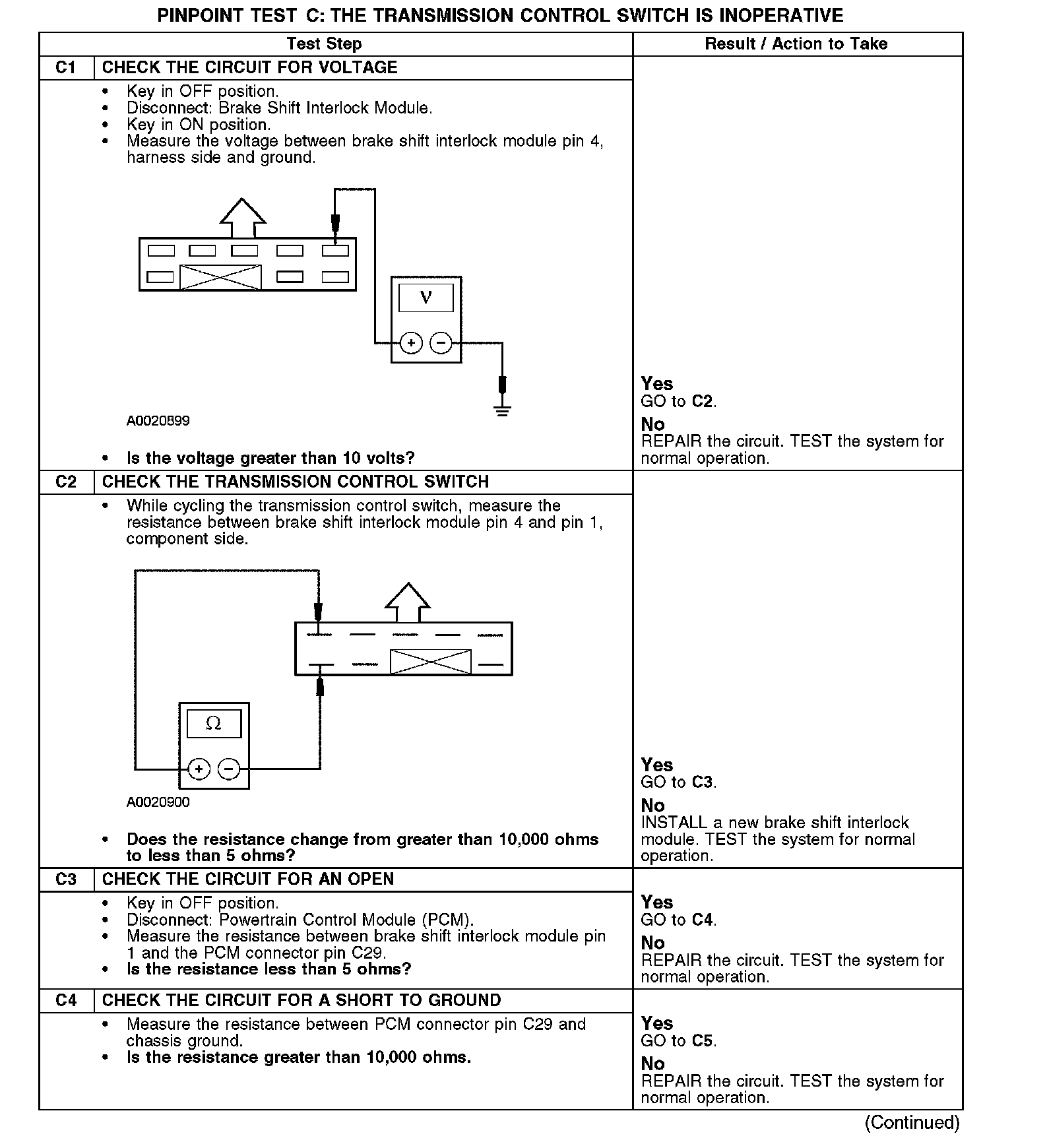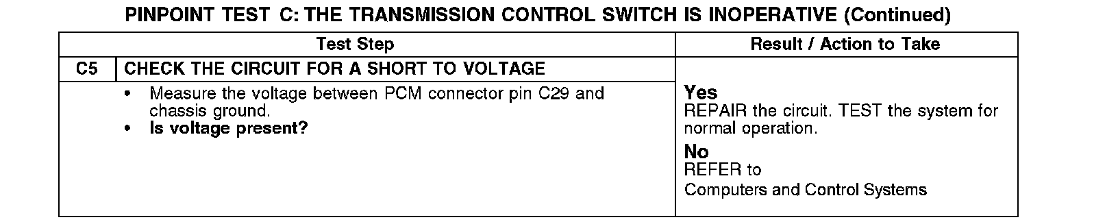 PINPOINT TEST C: THE TRANSMISSION CONTROL SWITCH IS INOPERATIVE