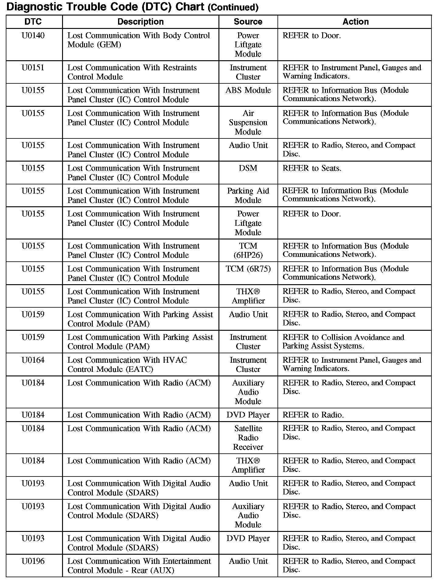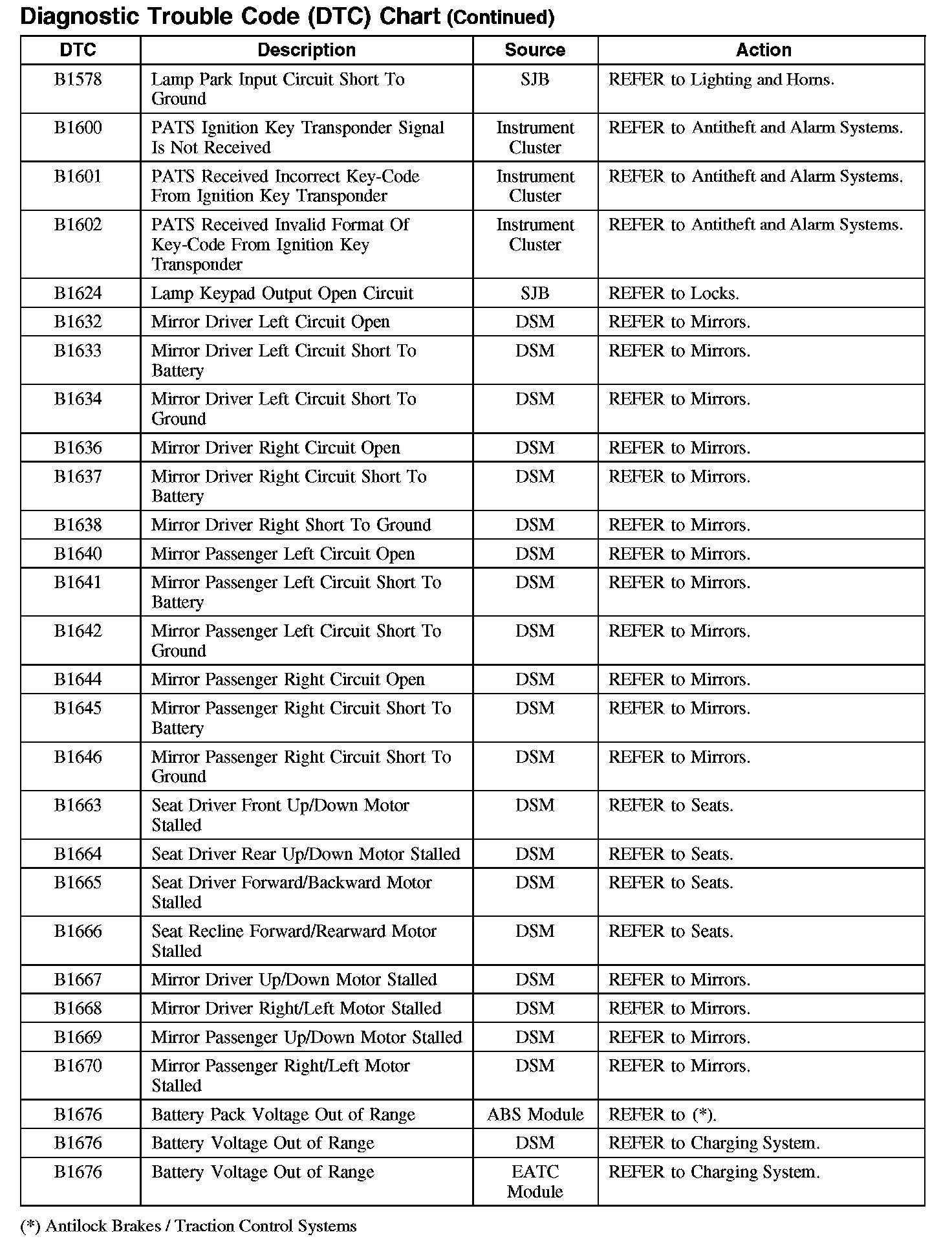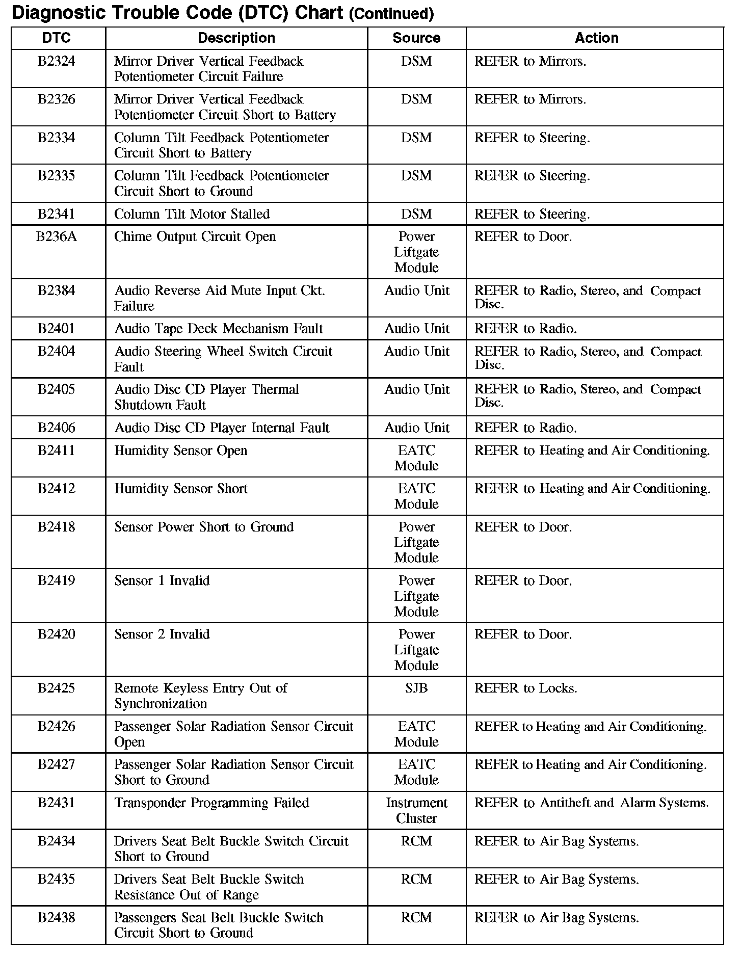 DIAGNOSTIC TROUBLE CODE (DTC) CHARTB1003-B106F: