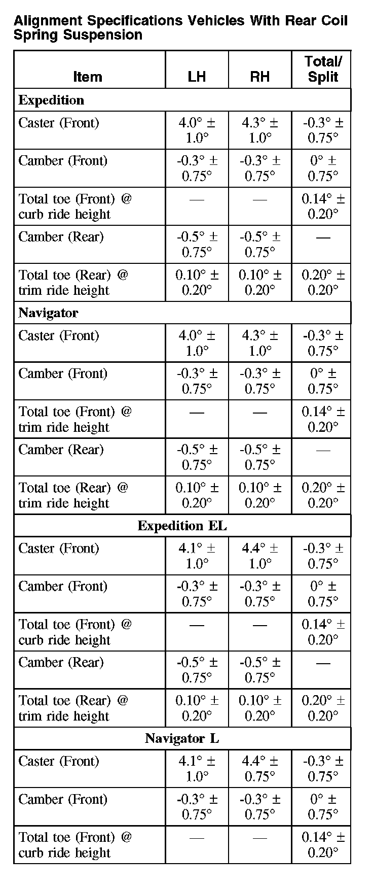 Alignment Specifications Vehicles With Rear Coil Spring Suspension: