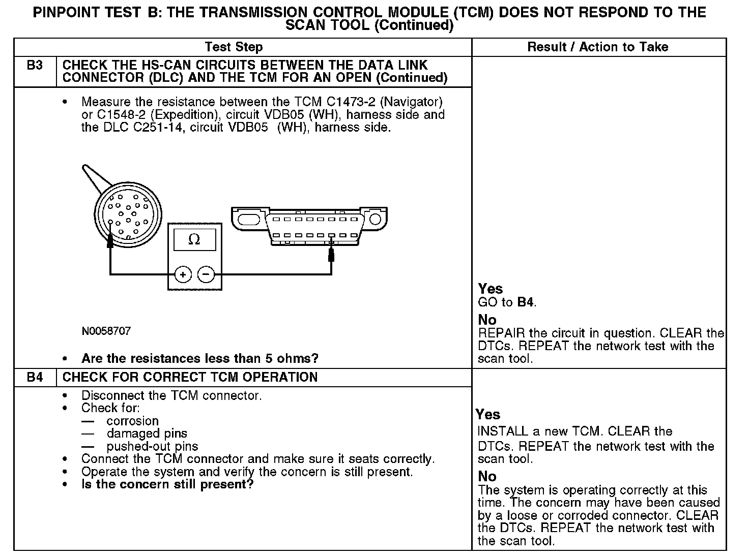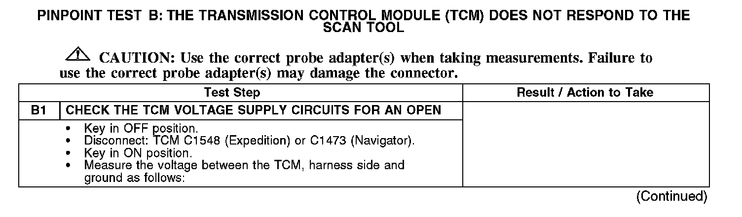 PINPOINT TEST B: THE TRANSMISSION CONTROL MODULE (TCM) DOES NOT RESPOND TO THE SCAN TOOLB1: