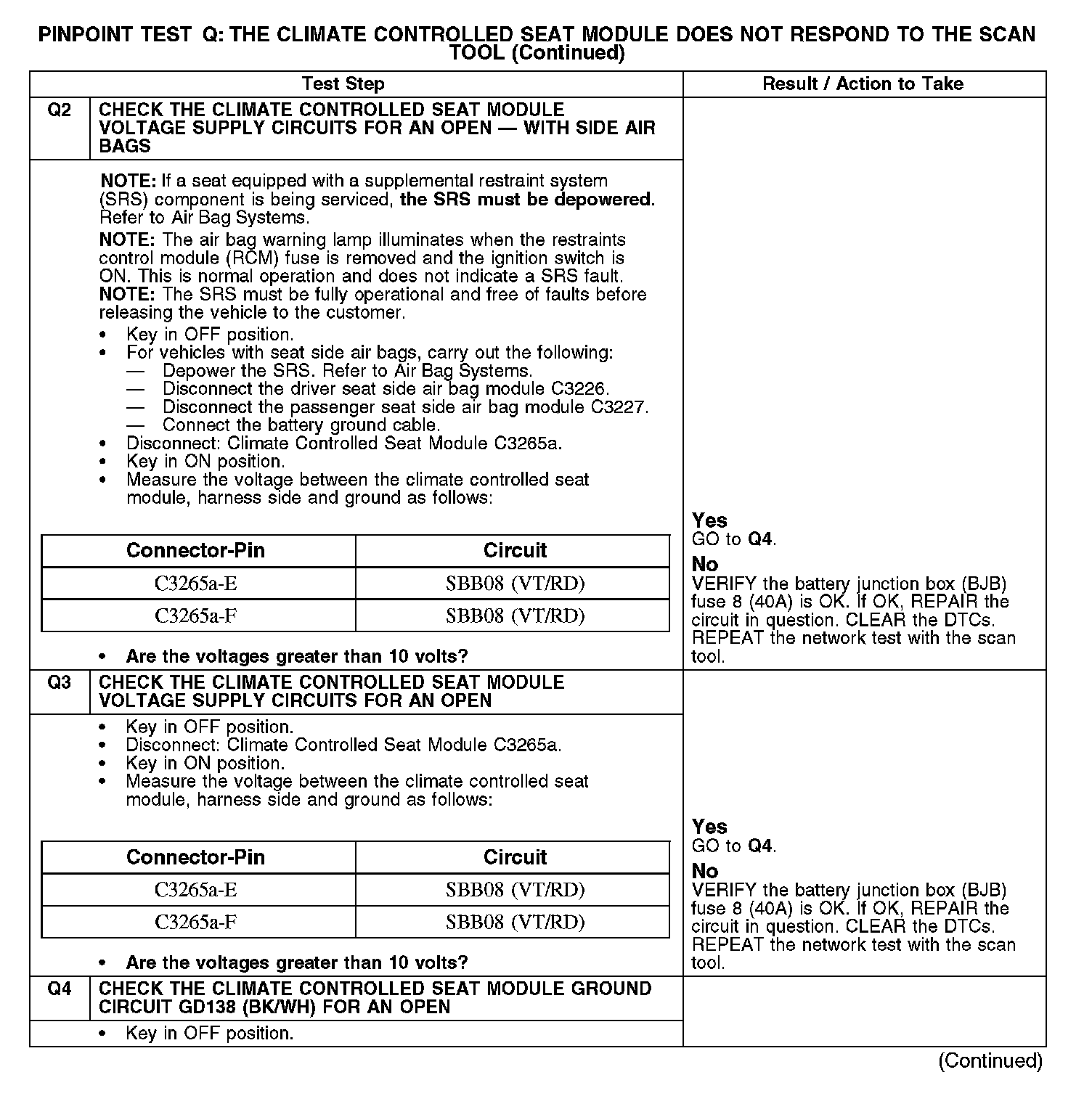 Test Q: The Climate Controlled Seat Module Does Not Respond To The Scan Tool