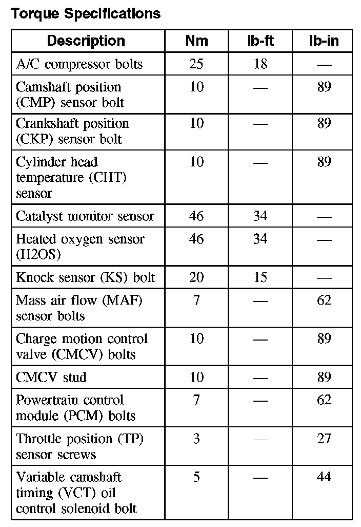 Torque Specifications: