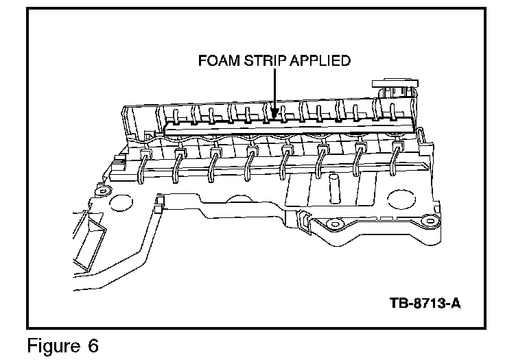6. Install the new foam barrier strip over the blades of the TCU, no special barrier strip is required for the TFT. (Figure 2 shows before foam barrier strip is installed, Figure 6 shows after the foam barrier strip is installed).