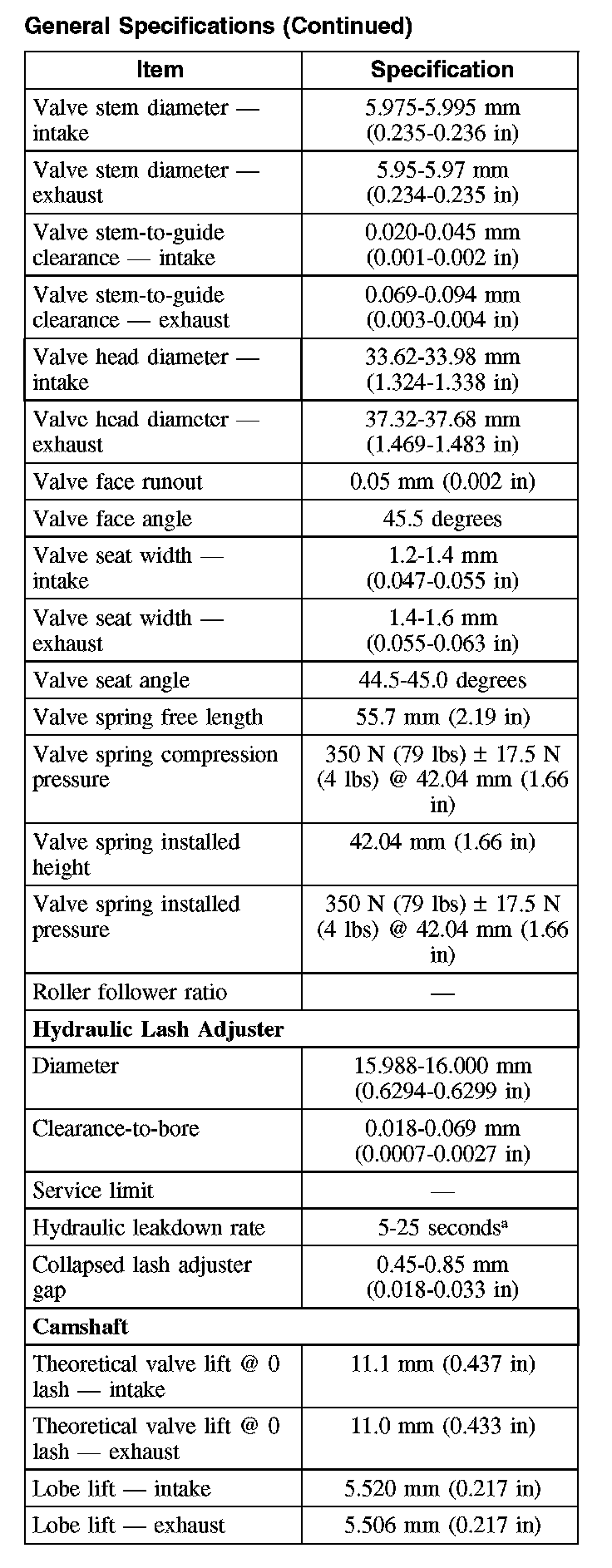 General Specifications