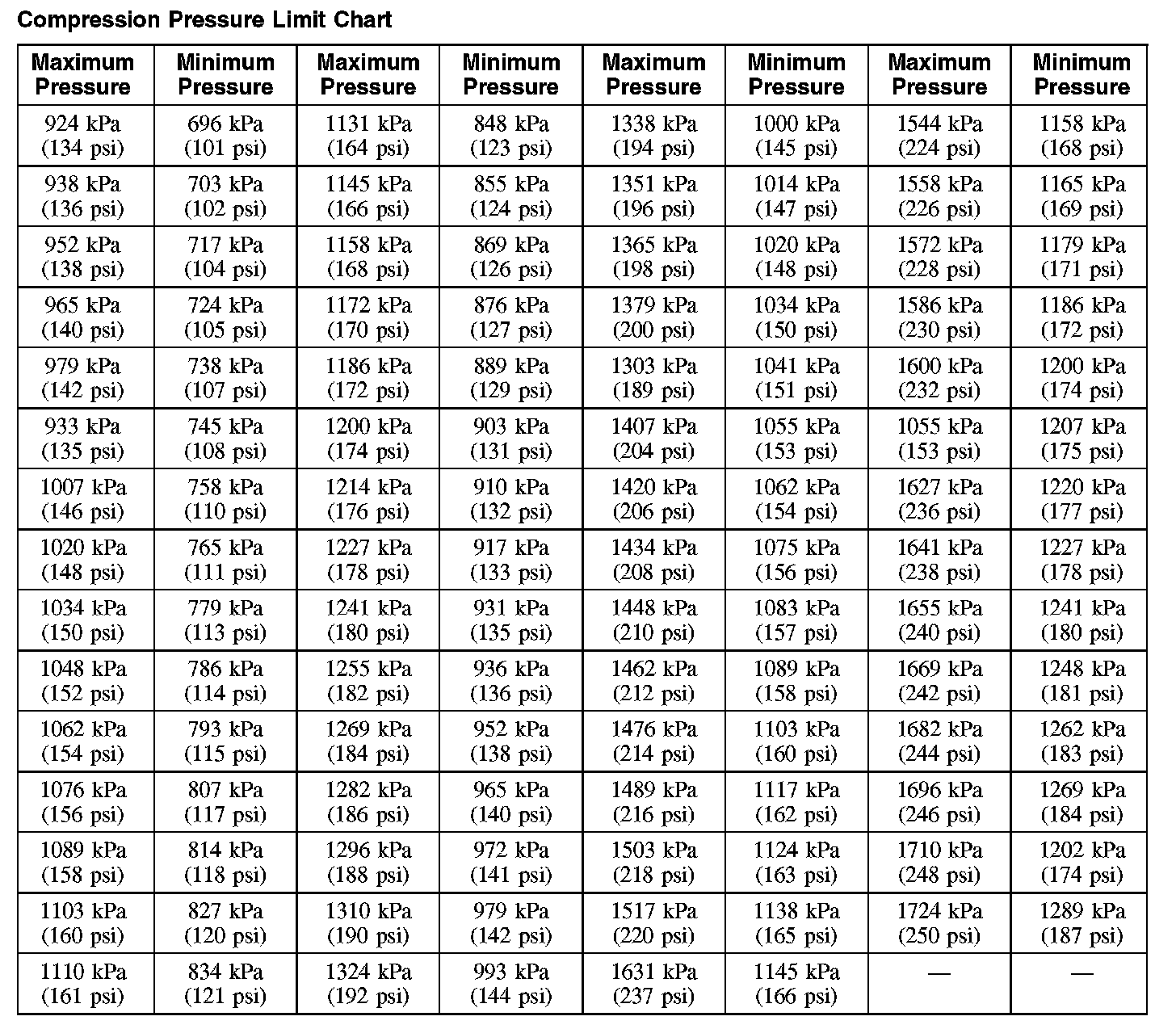 AllData Editors Note - Ford does not provide a cranking pressure specification, only an acceptable range.Compression Test - Test Results